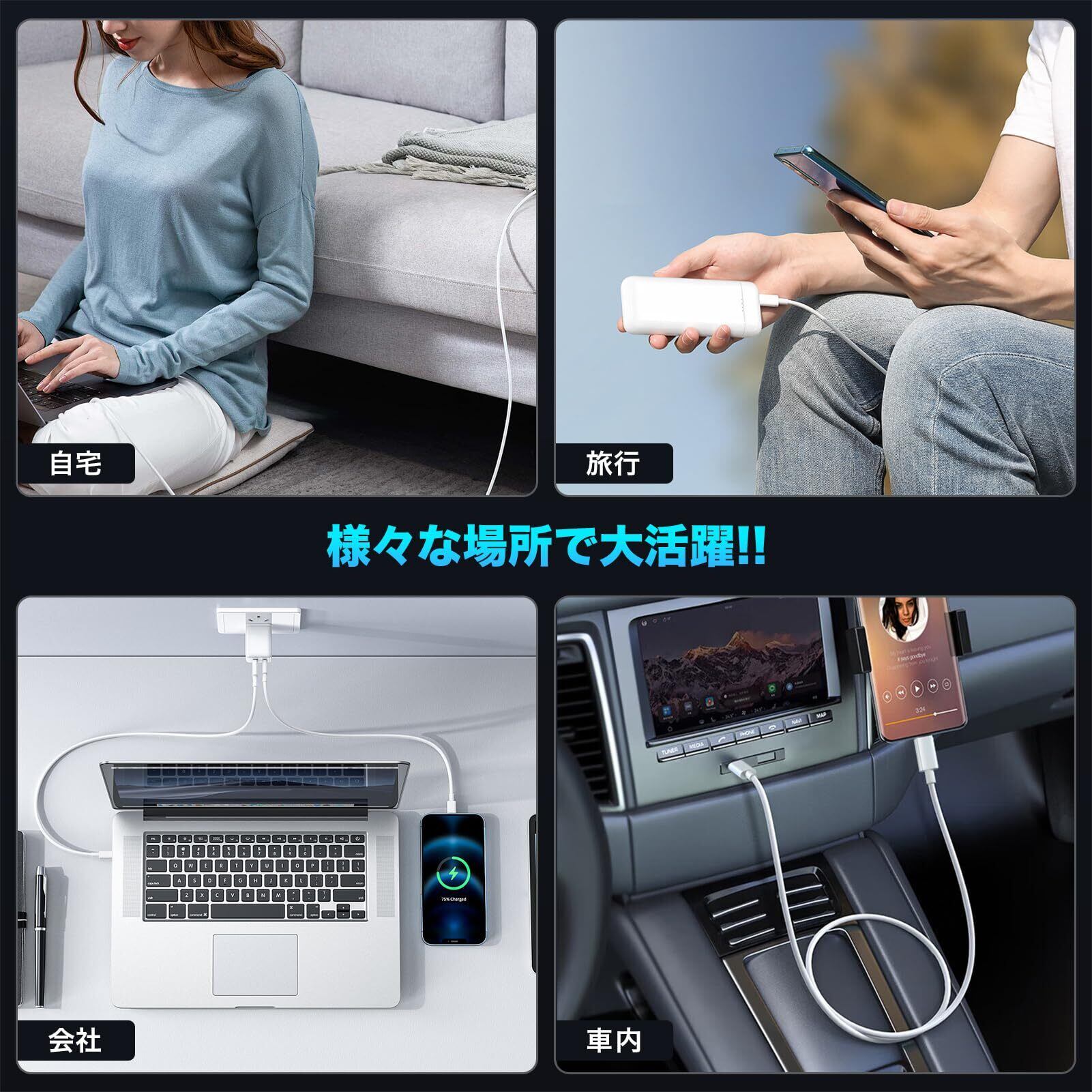 【幅広い交換性】:Type-Cポート搭載の充電器、パソコンだけでなく、iPad Pro/Air iPad mini6 スイッチ Switch MacBook HUAWEI Galaxy Sony PixelなどType-c機種に繋いで充電やデータ転送、同期が可能です。Type-Cケーブルはご自宅や職場などに置いたり、旅行や出張などの持ち運び用の予備とするなどの場用に大活躍!