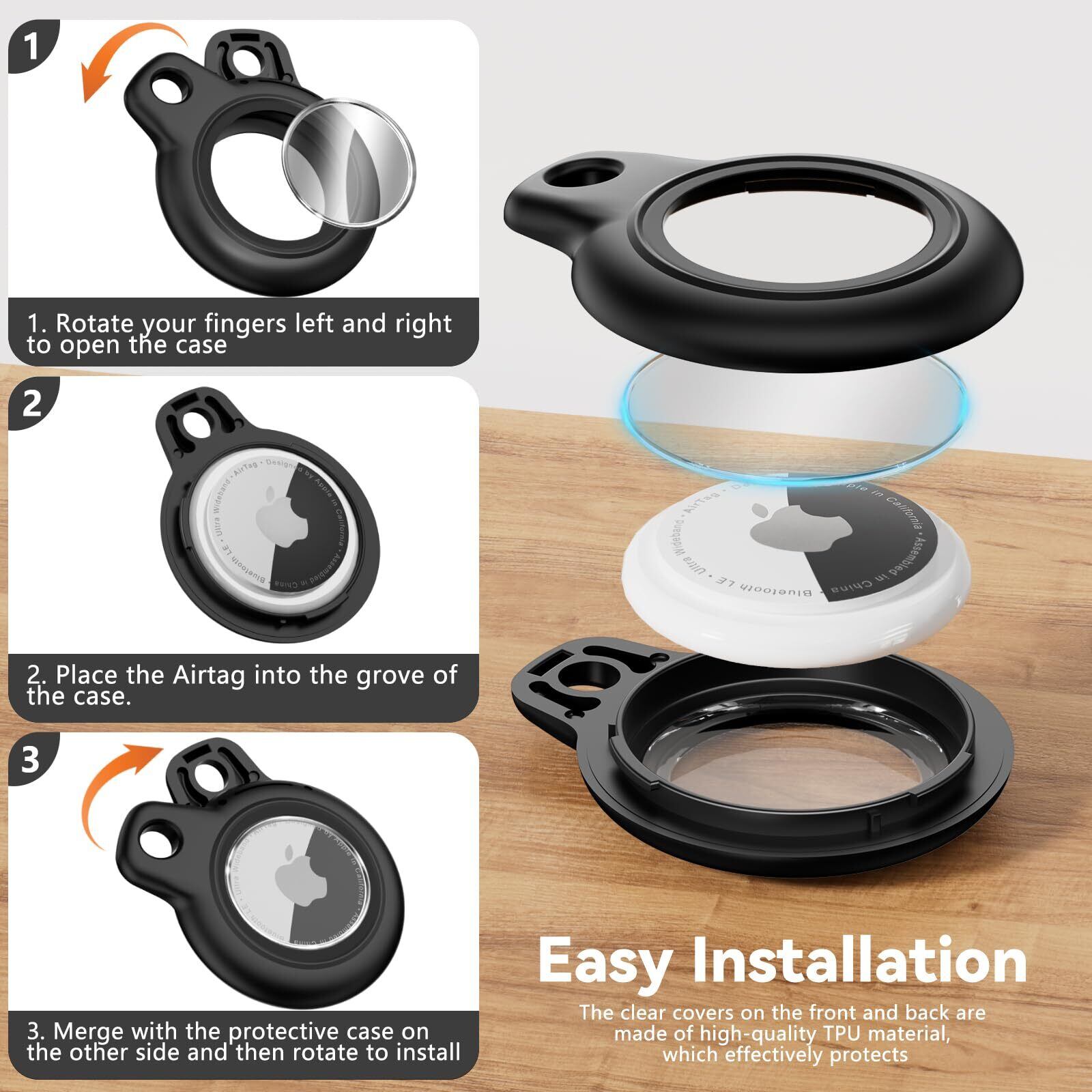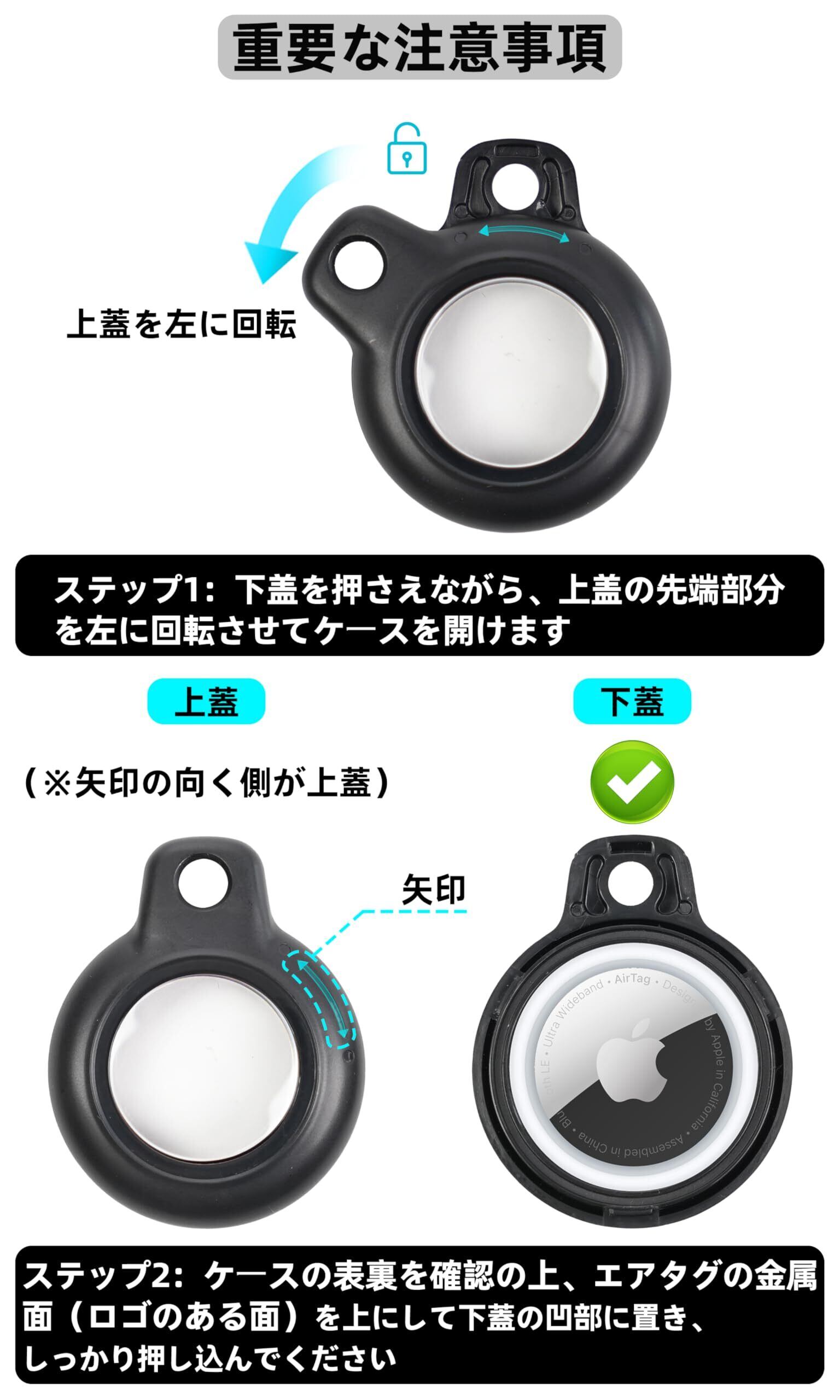 【取り付けが簡単で】複雑な操作をする必要はありません。いくつかの簡単な手順でエアラベルをスタンドに固定することができます(ヒント:具体的な取り付け手順は図を参照してください。ここでは表裏に注意して、矢印が付いているのは表です)。Apple Airtagsキーホルダーの保護カバーはタッチスクリーンに影響を与えず、信号を遮蔽します。紛失したものを探すのも、遠隔追跡するのも簡単に実現できます。