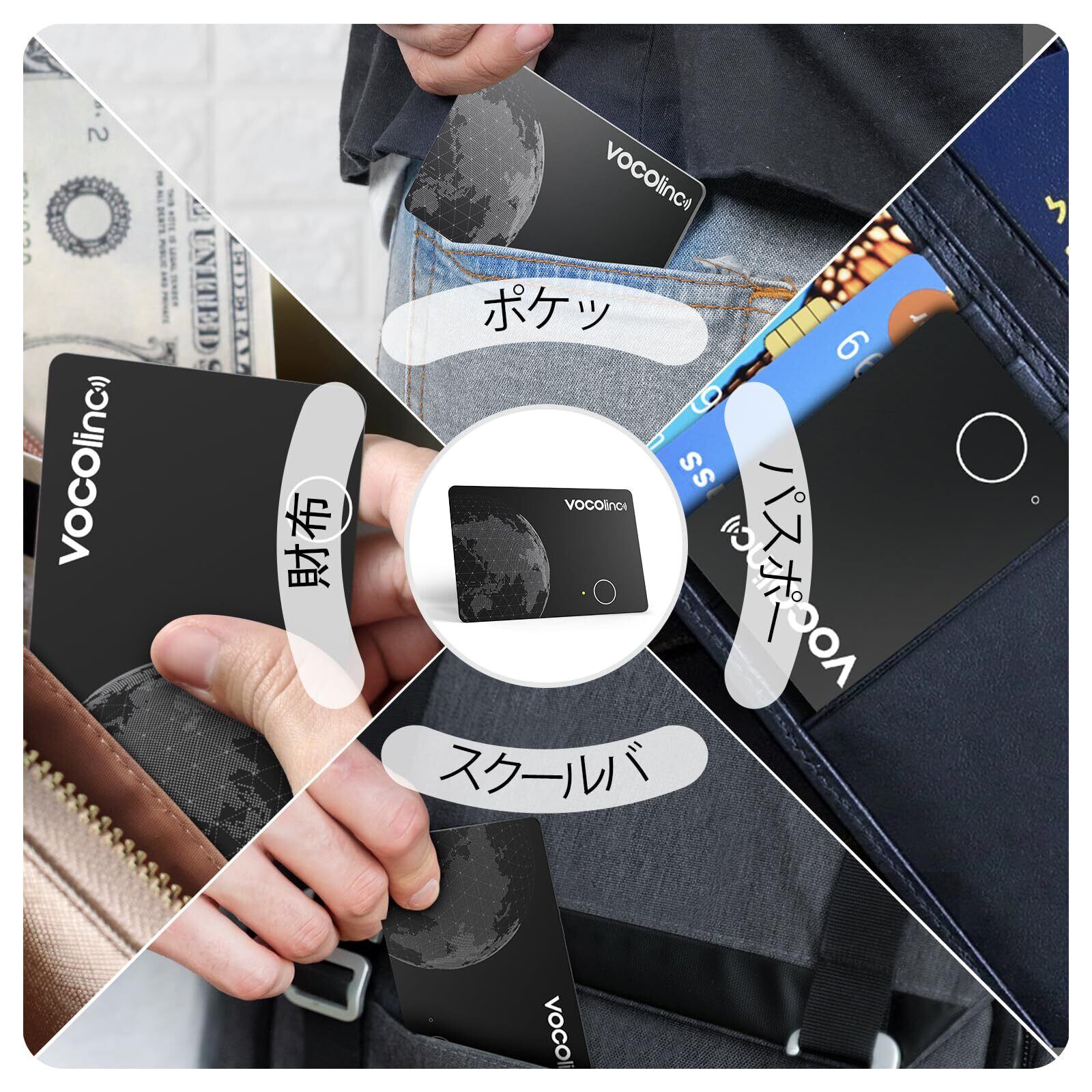 VOCOlinc エアタグ カード型(iOS/Android 用)ワイヤレス充電式,Apple の「探す」/ Google の「検索ハブ」に対応 ,紛失防止タグ 忘れ物防止 探し物 スマートタグ 財布用 超薄(0.16cm)