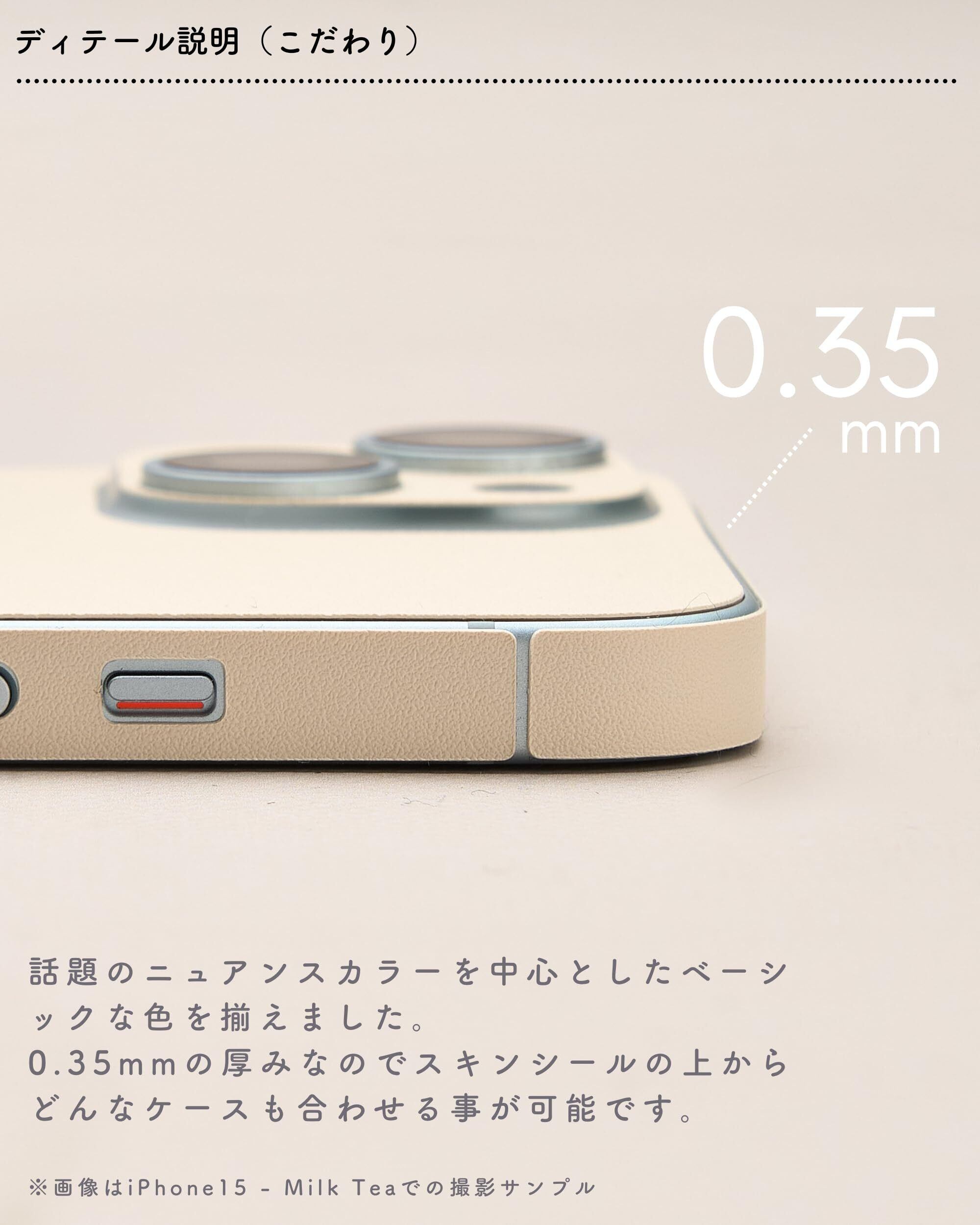 【スキンシールの上からどんなケースも合わせられる0.35mmの厚み】スマホケースの販売を通じ「クリアケースを使う際に中の色を変えたい」という声を多く頂いていました。特殊加工をし質感を出すとシールの厚みが増します。試行錯誤を繰り返し誕生したのが「0.35mm」という丁度良い厚みです。