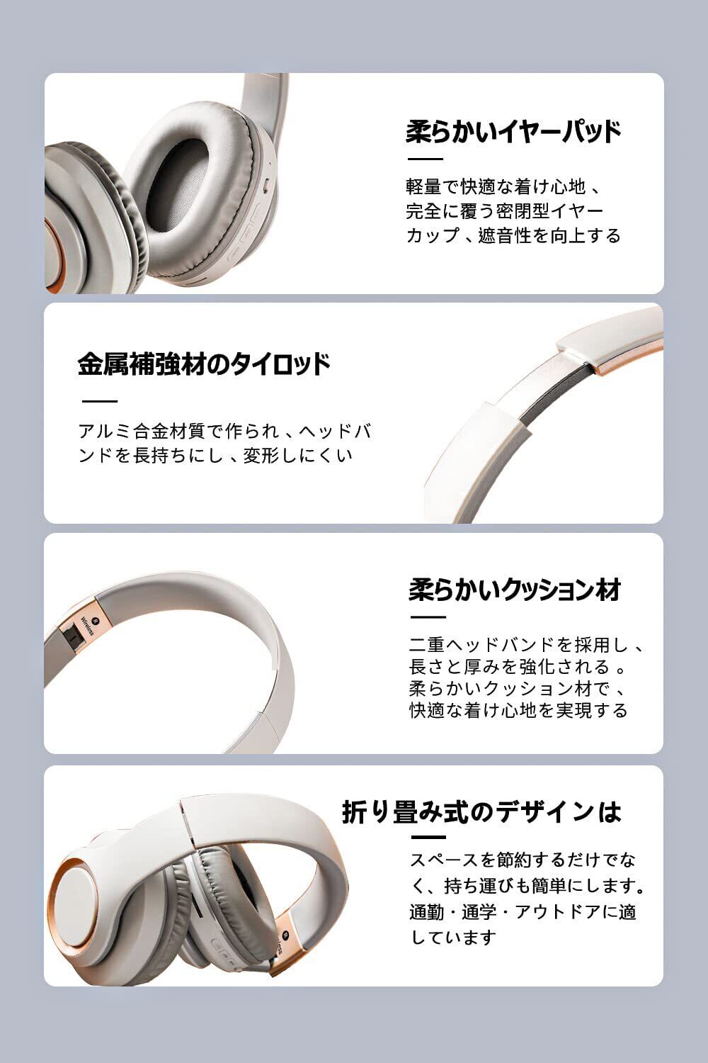 【超軽量&快適な着け心地・折り畳み可能】QT-812 ワイヤレスヘッドホンは人間工学に基づいた設計と伸縮調整を組み合わせることで、イヤーマフは頭にフィットします。重さ0.22Kg ,高級なPUタンパク質の皮を採用され、柔らかで快適で、イヤホンをつけていないような快適な体験を与えてあげます。一日中つけても圧迫感やベタつきなどの不快感もほとんどありませ ん。折り畳み式のデザイン,スペースを節約できるだけでなく、持ち運びも簡単です。