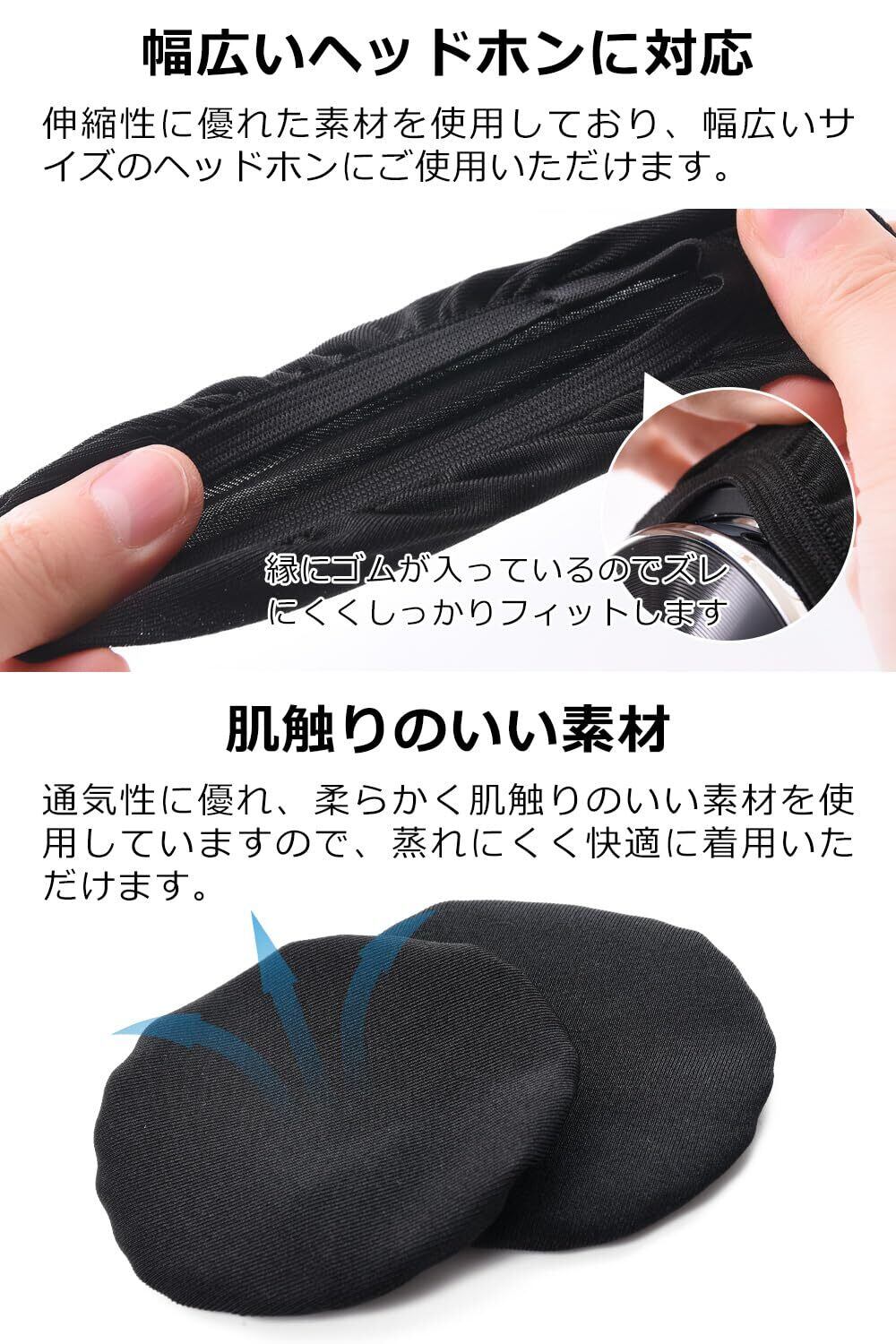 [jubel] ヘッドホンカバー イヤーパッド カバー ヘッドフォンカバー ヘッドホン用(汎用)x2ペアセット(S~Mサイズ/水洗いOK) ヘッドホン ヘッドセット 布 黒 (M)