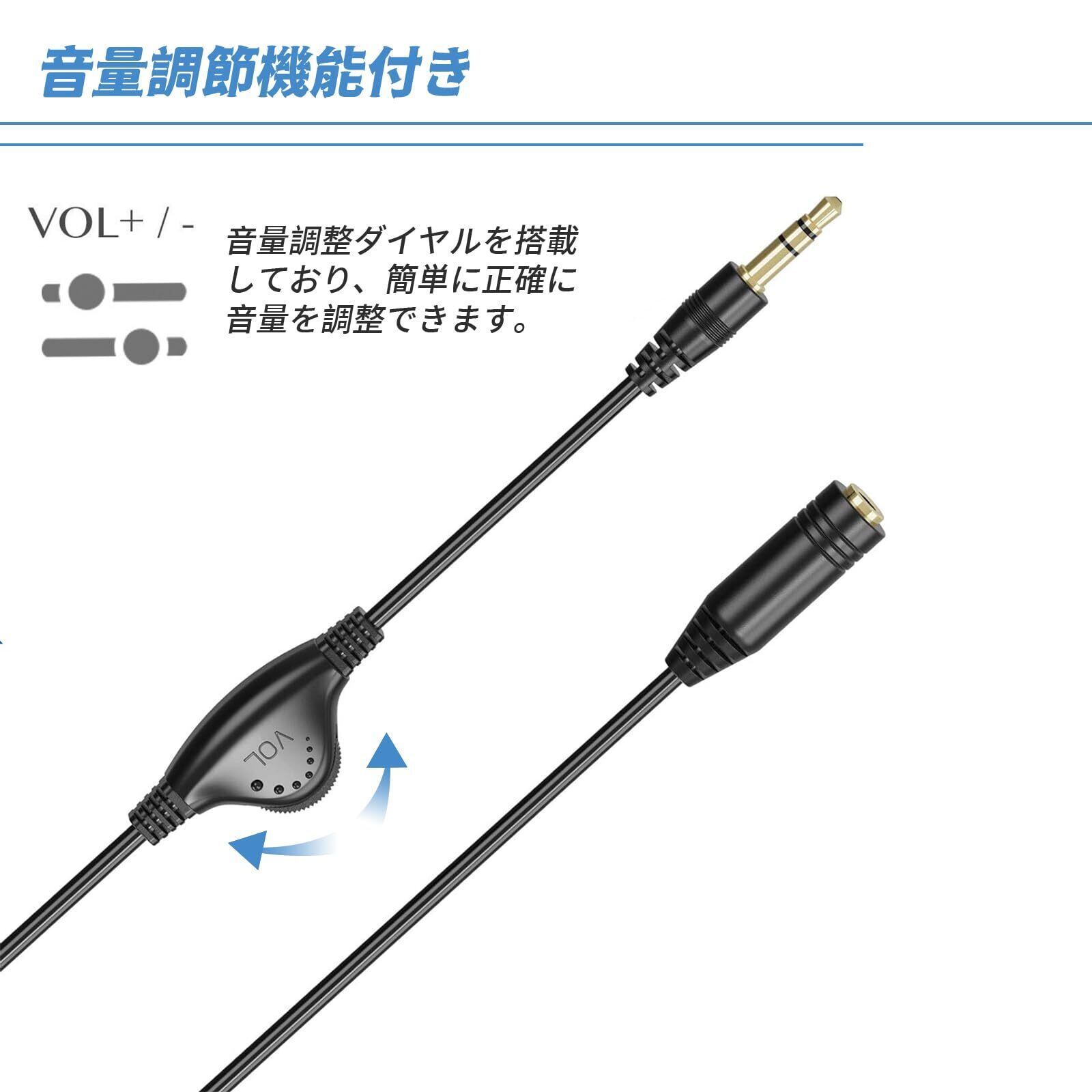 3.5mm ヘッドホン延長 ケーブル (2個入り) ボリューム調節ケーブル 30cm ボリューム調節 ダイヤル付 イヤホンオーディオ延長コード 音量調節 音質劣化防止 コンピュータ 携帯電話 ヘッドフォン オーディオインターフェース拡張用