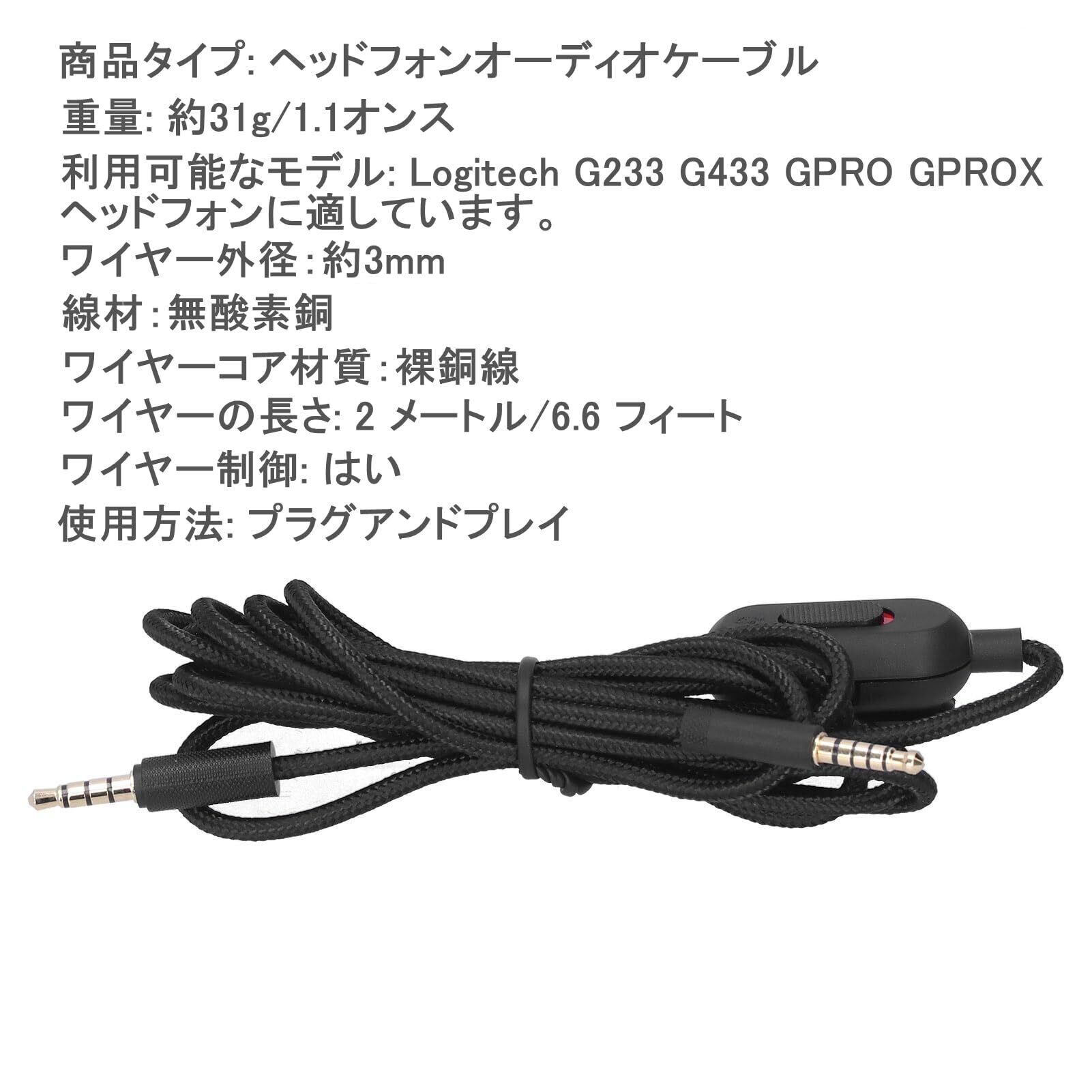 オーディオケーブル ヘッドフォンオーディオケーブル G233 G433 GPRO GPROX用 ボリューム調節ケーブル 音質劣化防止 耐食性 ゲーム