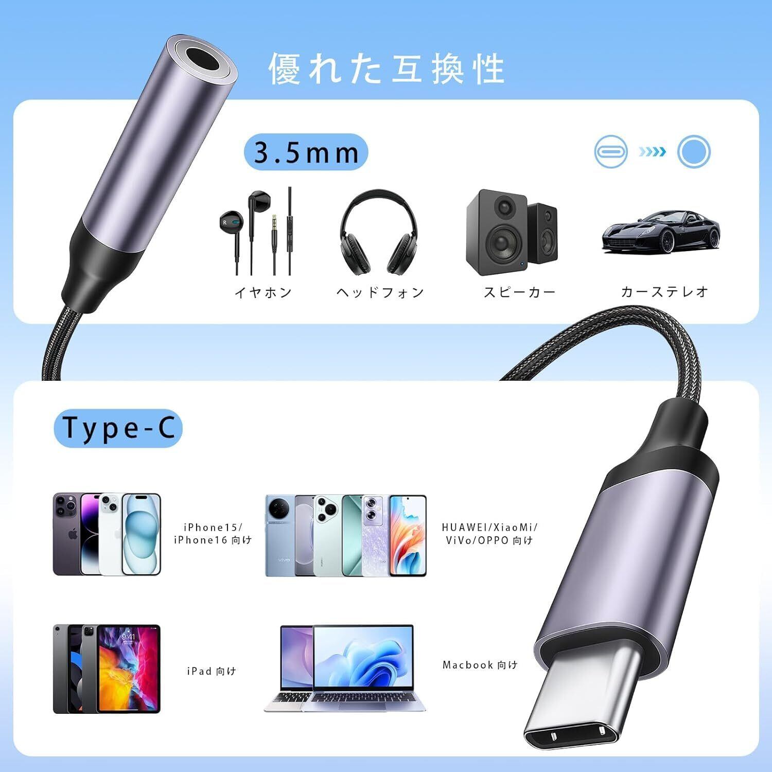 【2025MFi認証】 iphone イヤホンジャック 3.5mmオーディオ変換器 イヤホンジャック変換タイプc 【ハイエンドHi-Fi音質】 3.5mm変換タイプc 両極/三極プラグに対応 独立DAC チップ内蔵 音量調節/通話/音楽対応 携帯用で耐久性がある iPhone17/16/15/iPad Pro/Android/Type Cなど機器に適用