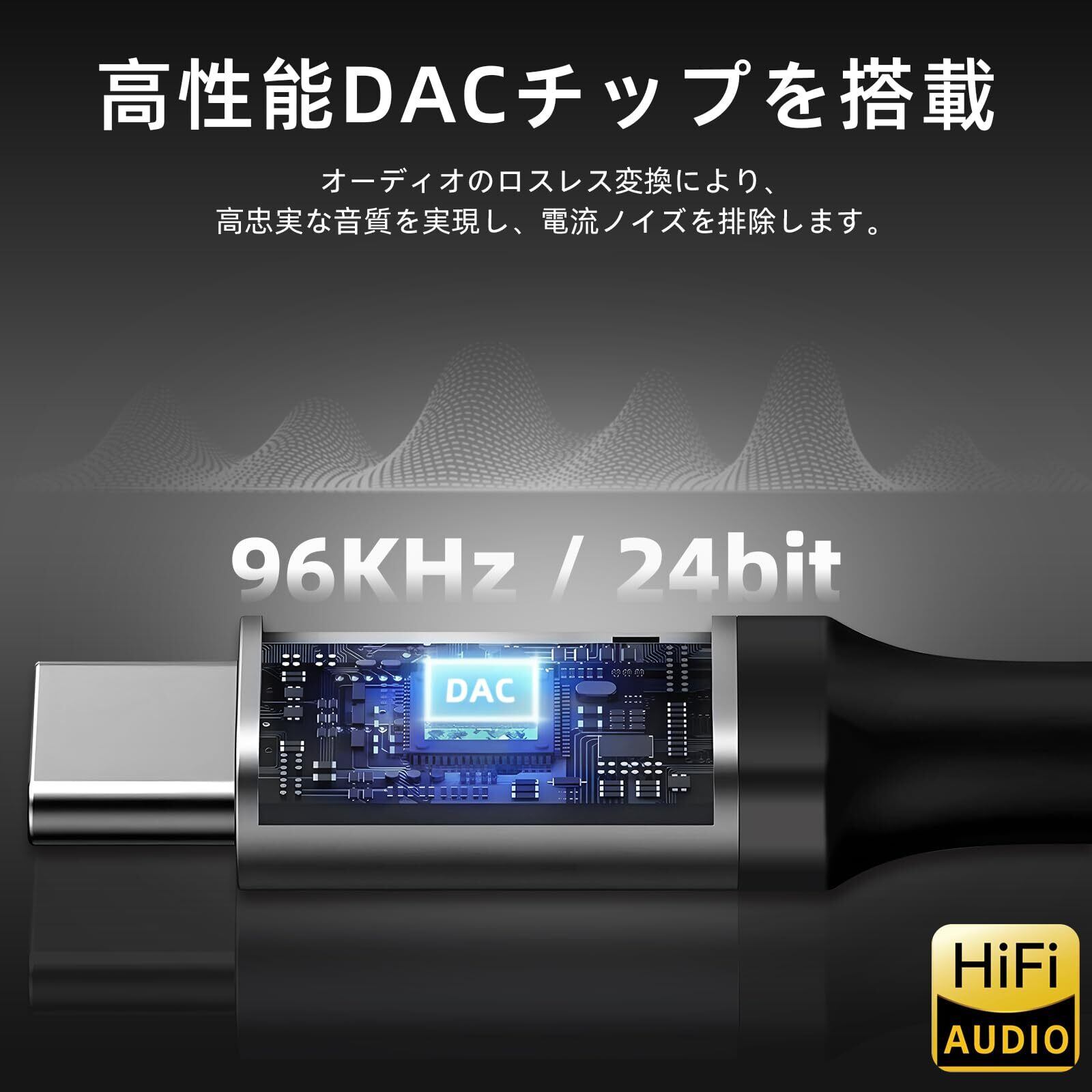 usb c 変換アダプタ【ハイレゾ音質】イヤホン 有線 タイプc DAC搭載 24bit/96KHz対応 音量調節/通話/音楽対応 iPhone17/16/15 Pro/i-Pad Pro/Mac/Android/Type Cなど機器に適用