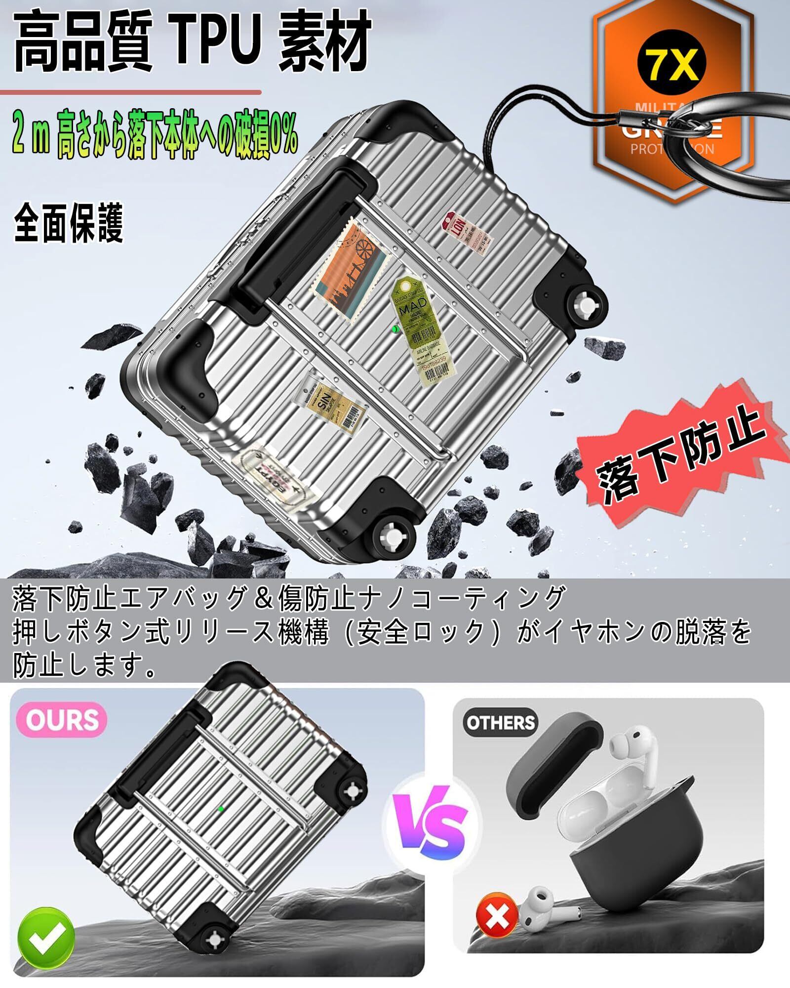 AirPods Pro3 ケース 2025 AirPods Pro 第3世代 ケース ロック付き ハード TPU エアーポッズプロ3カバー えあーぽっつ プロ3カバー デコシール同梱 ストラップ付き ワイヤレス充電対応 LED表示 おしゃれ 分離式 全面保護 耐衝撃 傷防止 軽量 XLX(シルバー)