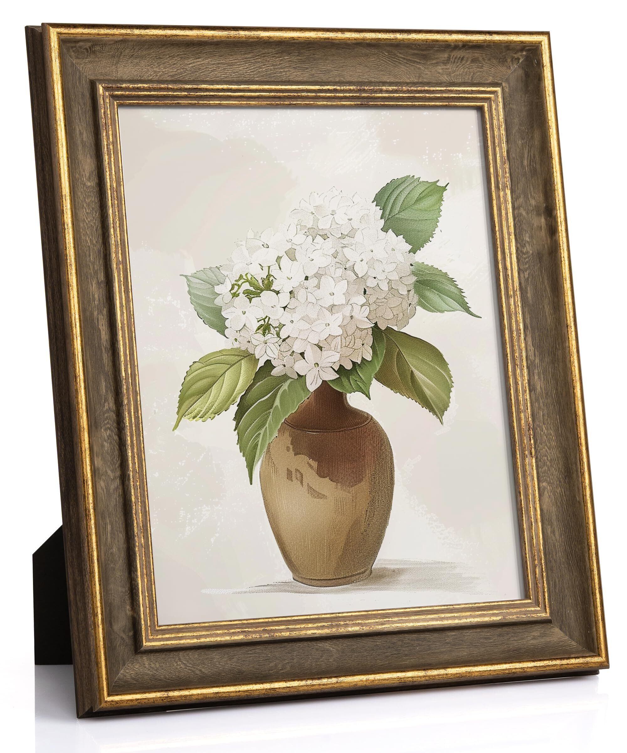 Afuly 額縁 A4 フォトフレーム おしゃれ 写真立て アンティーク風 置き掛け兼用 木目ゴールド 賞状 額縁 縦横兼用 写真フレーム 結婚式 記念写真 誕生日 プレゼント 感謝状 栄誉証書 絵画 装飾