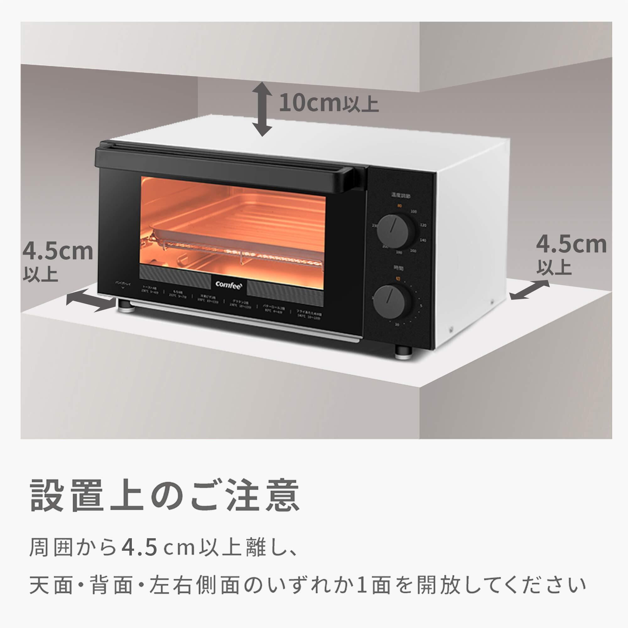 COMFEE' オーブントースター 4枚焼き 12L イマー設定 1200W 上下ヒーター トレー付き お手入れ簡単 省スペース設計 CF-AC121