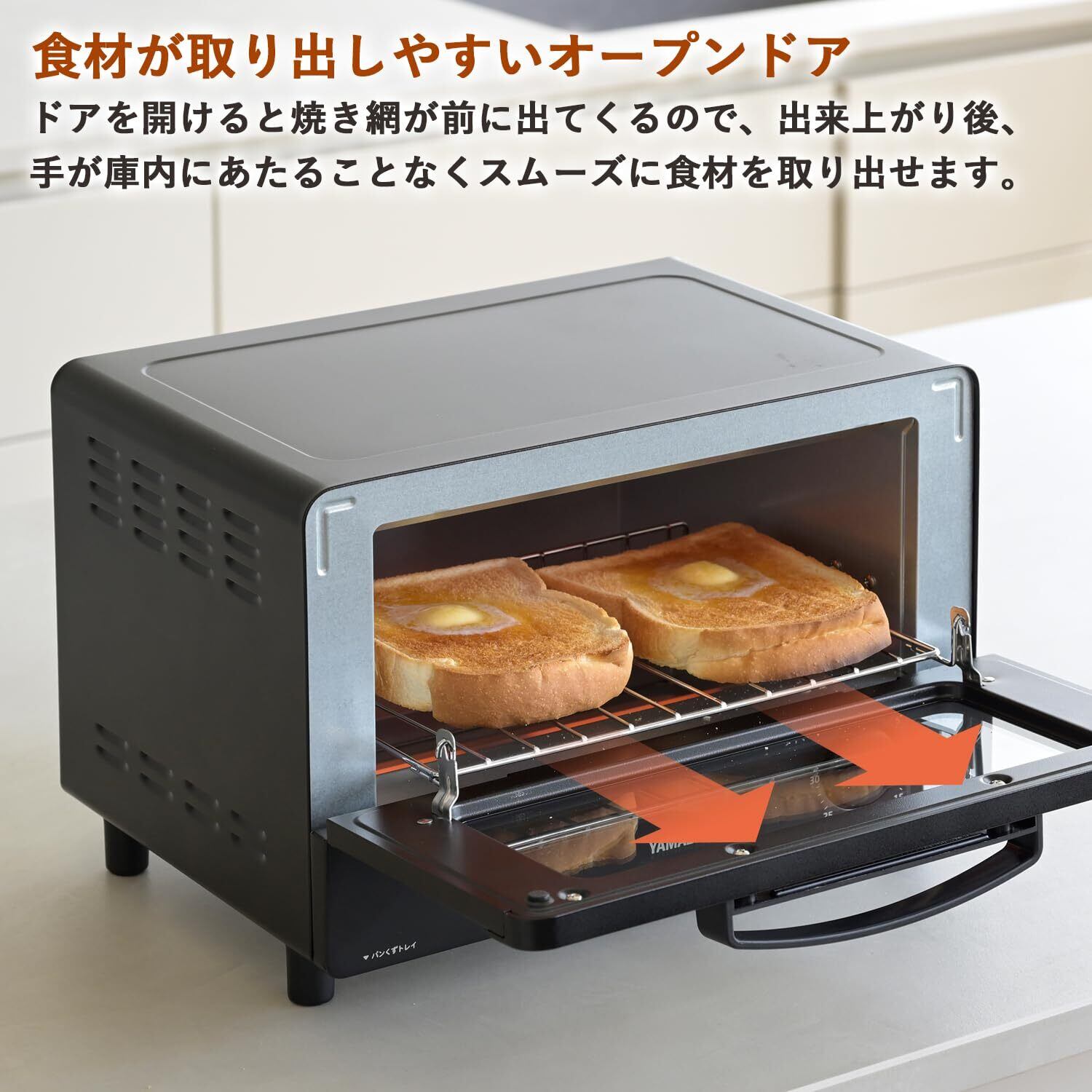 ●パンくずトレイはスライド式で簡単に引き出せ、丸洗い可能なのでお手入れ簡単。