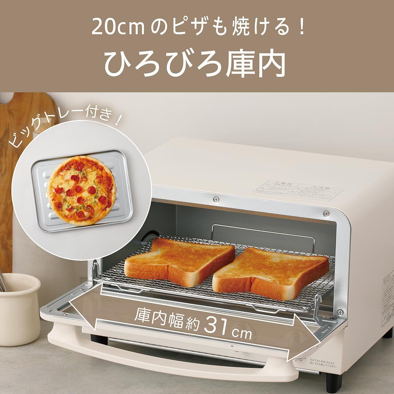 コイズミ オーブントースター 1200W 無段階温度調節 15分タイマー 2枚焼き ホワイト KOS-1205/W