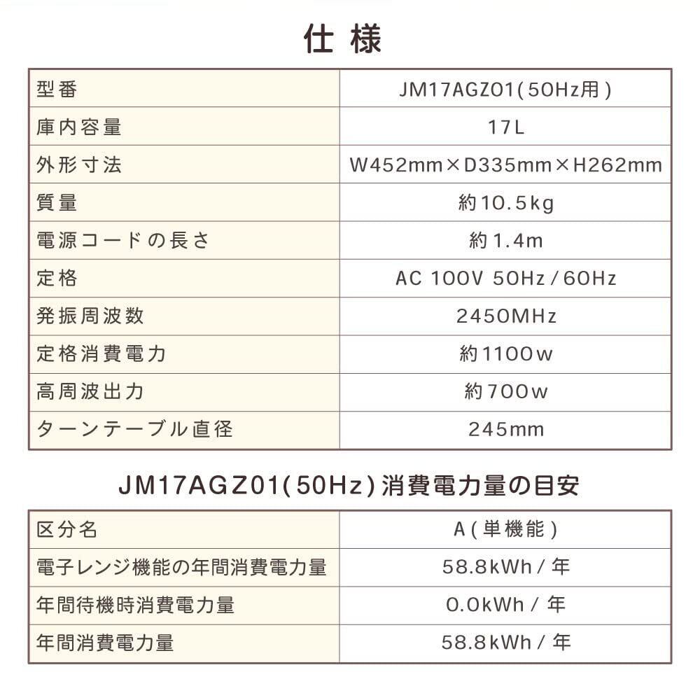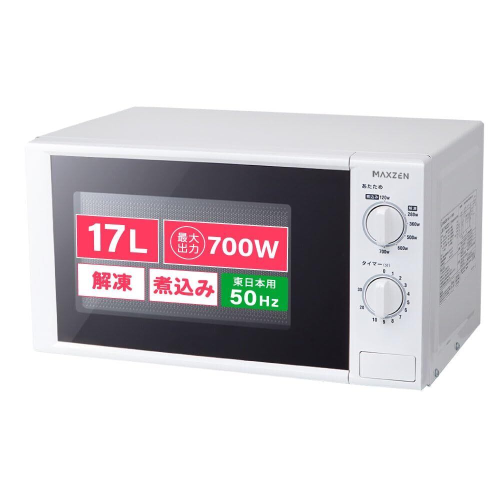 MAXZEN 電子レンジ 17L ターンテーブル 東日本専用 一人暮らし 1人暮らし シンプル 単機能 700W プッシュボタン 白 ホワイト JM17AGZ01 50hz マクスゼン