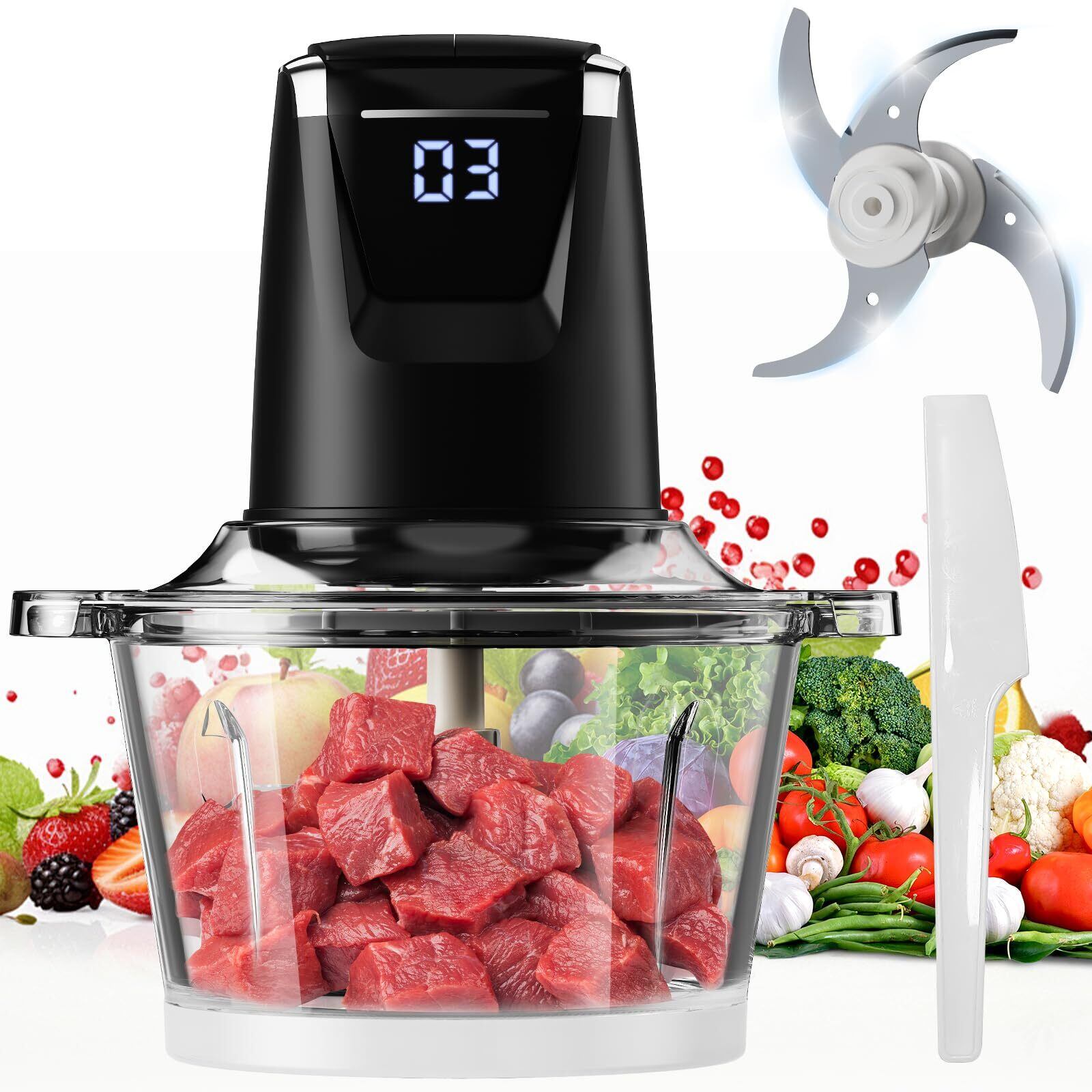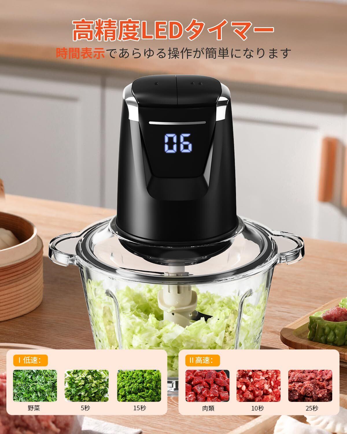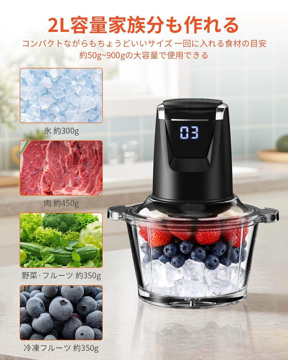 フードプロセッサー【業界初LED液晶ディスプレイ】550Wフードチョッパー ハイパワー 2L大容量 ミキサー 小型 肉挽き 野菜みじん切り 離乳食 氷も砕ける 4枚刃カッター 刻む・潰す・砕く・混ぜる 1台多役 水洗い可能 過熱保護 操作簡単 家庭用 人気