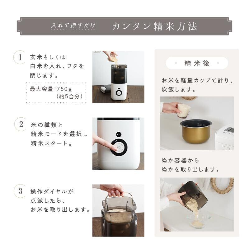 【5合対応】atRise 精米機 コンパクト スリム デザイン 幅15cm 省スペース 米ぬか活用 ホワイト