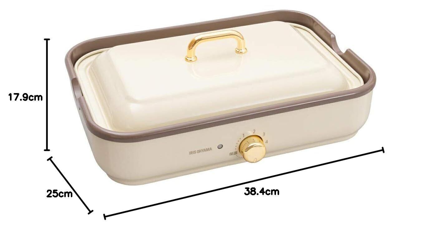 【2022最新】アイリスオーヤマ ホットプレート コンパクト 着脱式 温度調節機能付き たこやき器 深鍋 プレート 2枚 1000W 簡単お手入れ サーモスタット機能 洗いやすい おしゃれ 付き PHP-1002TC-VC バニラクリーム