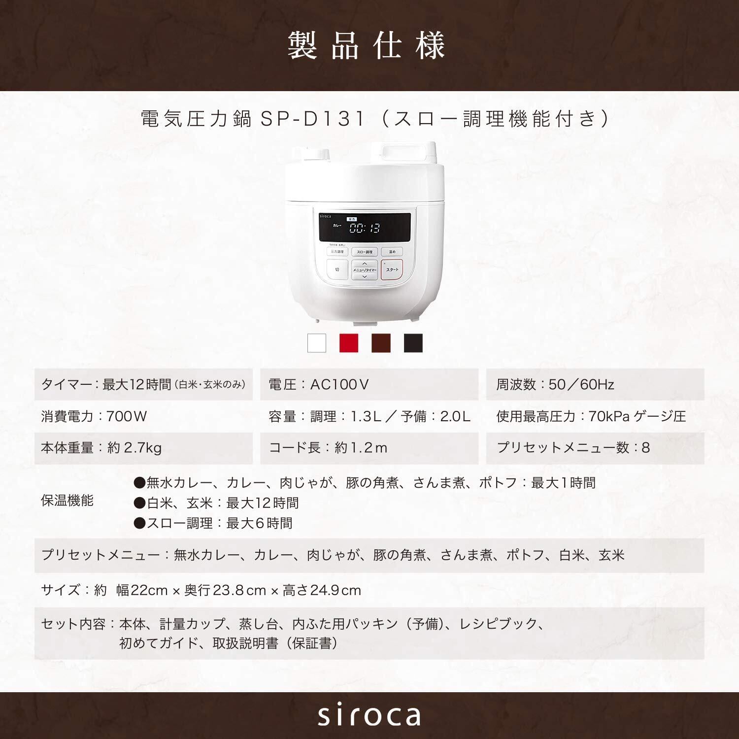 【数量限定】シロカ 2L電気圧力鍋[コンパクト2Lモデル/1台6役(スロー調理付き)] SP-D131 ホワイト