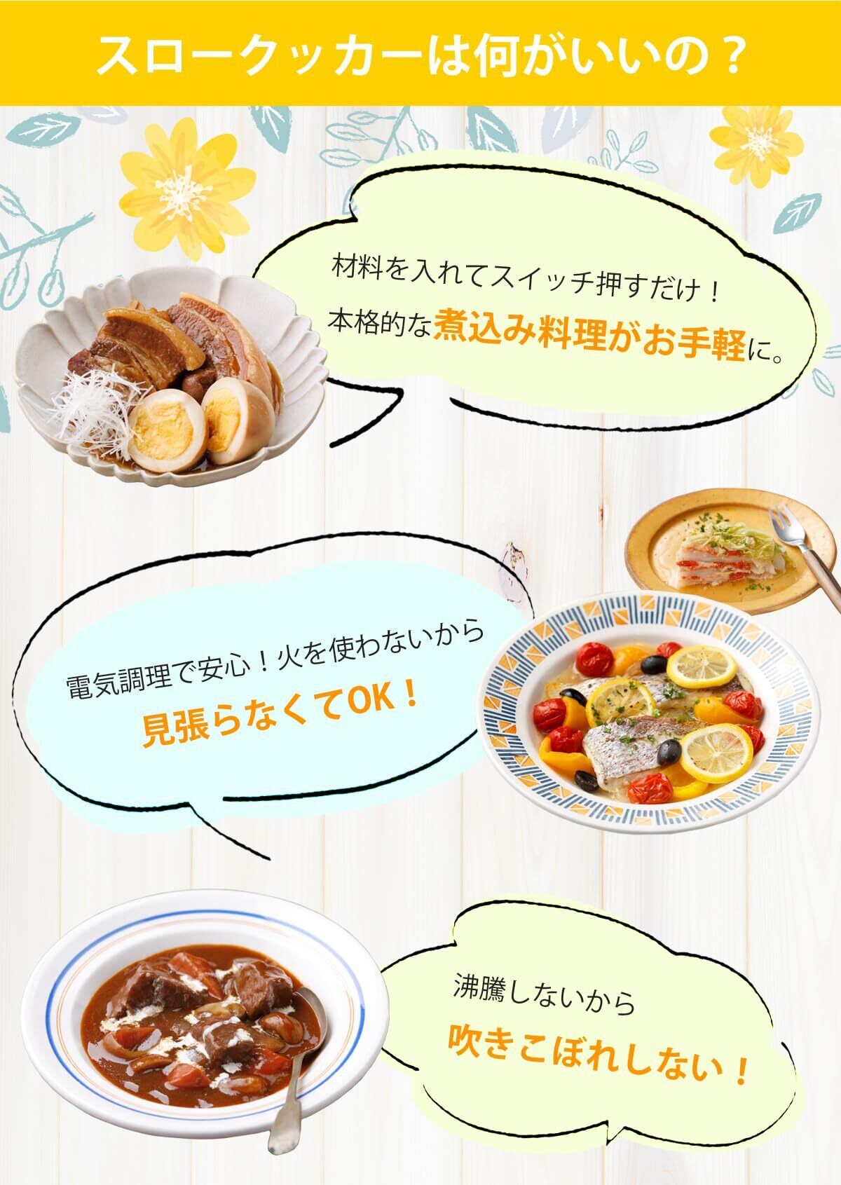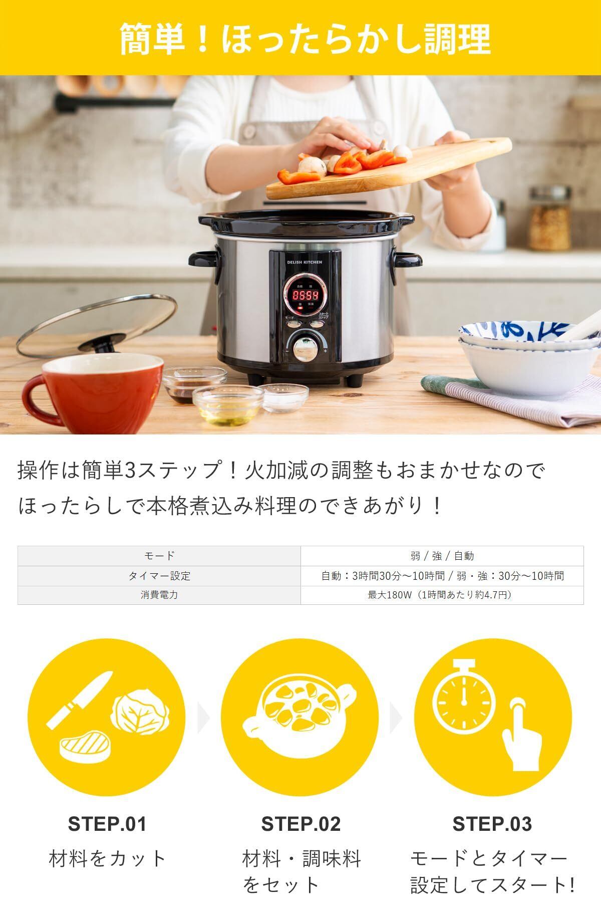 調理方法:材料を入れてタイマーをセットするだけで本格的な煮込み料理が完成します