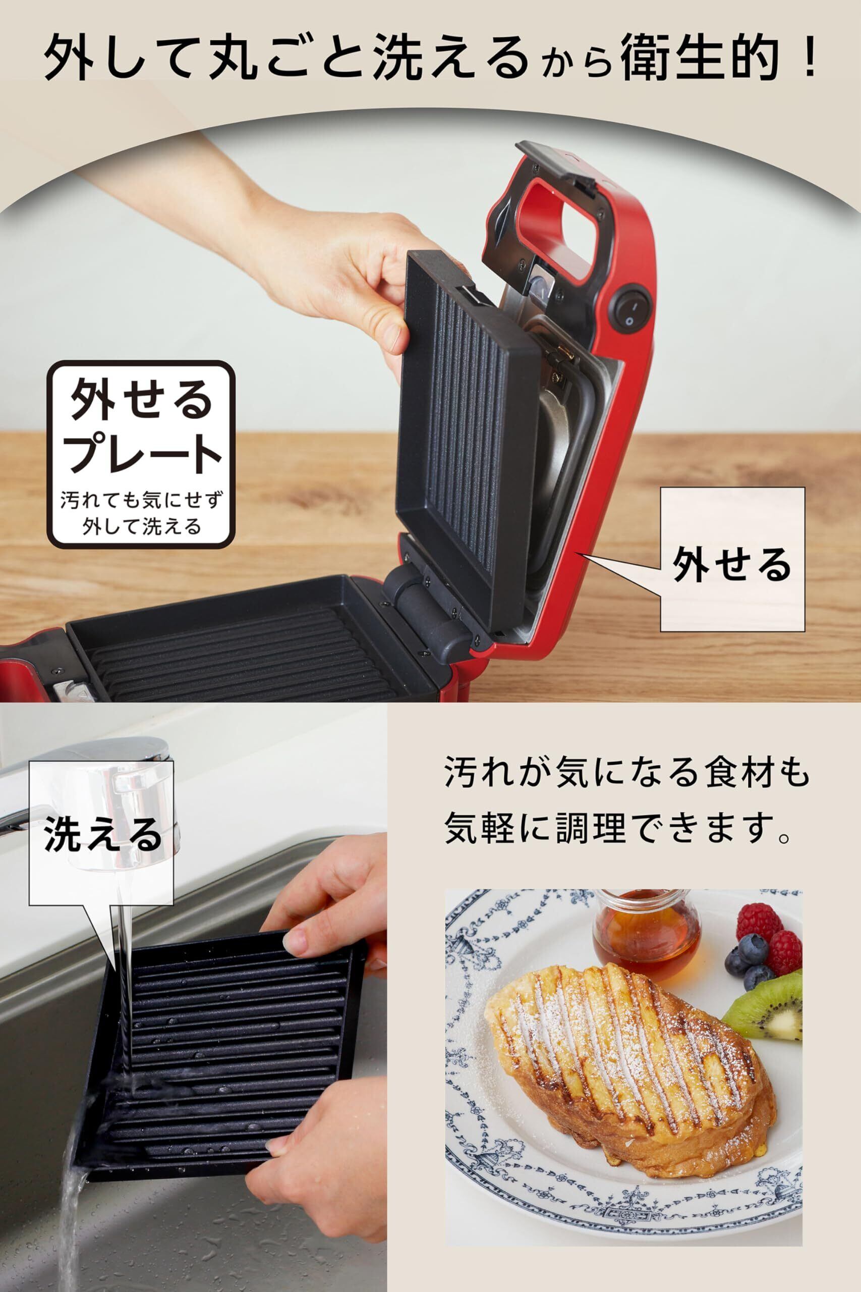 【外して洗えるプレート】食材で汚れても取り外して丸洗いできるので調理後のお手入れもかんたんで、衛生的。チーズなど汚れが気になる食材も気軽に調理できます。