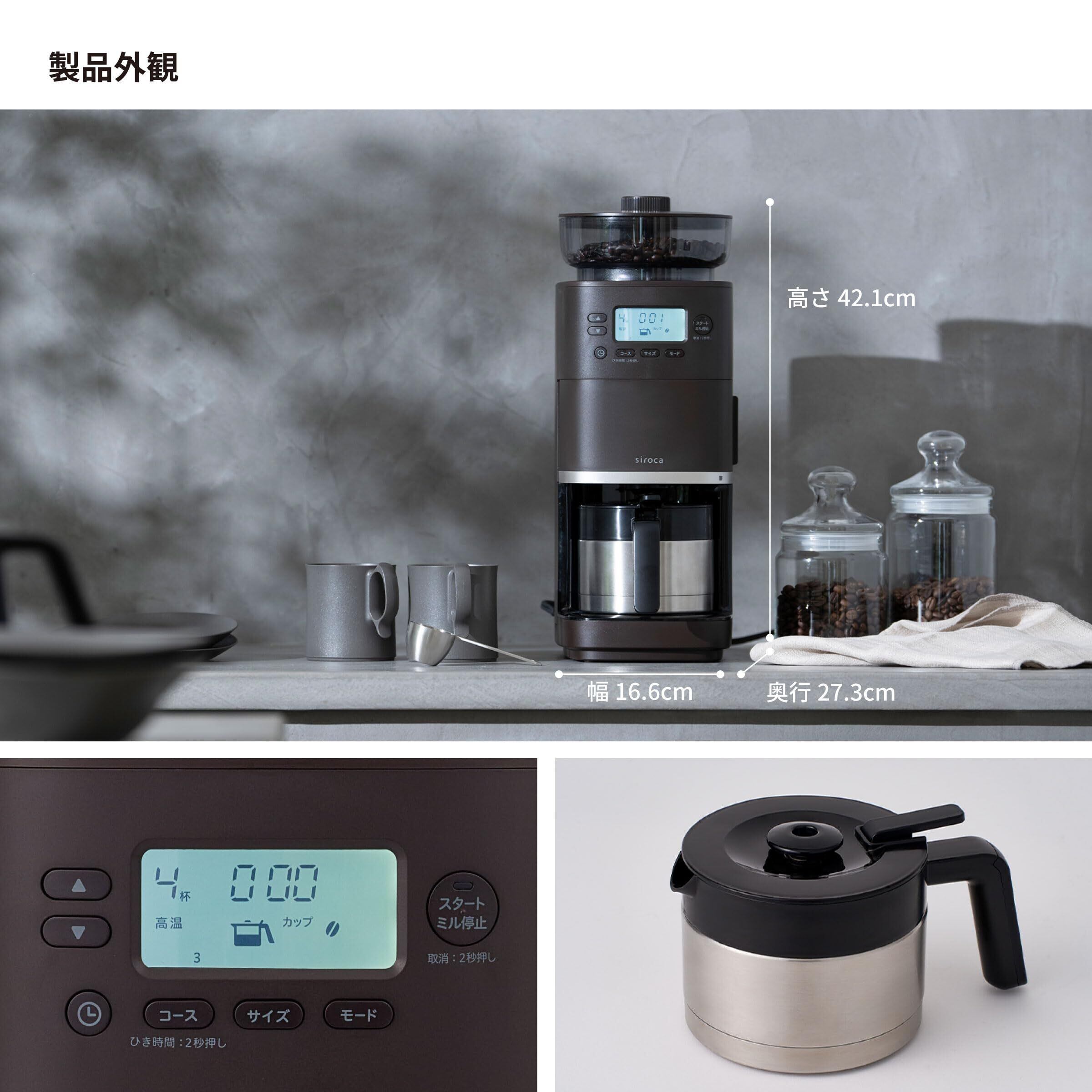 シロカ コーン式全自動コーヒーメーカー カフェばこ PRO SC-C281(TD) ダークブラウン|ステンレスサーバー デカフェコース搭載 新形状ドリッパー採用 ミル一時停止機能 豆・粉対応 豆・水自動計量 挽き目無段階調節