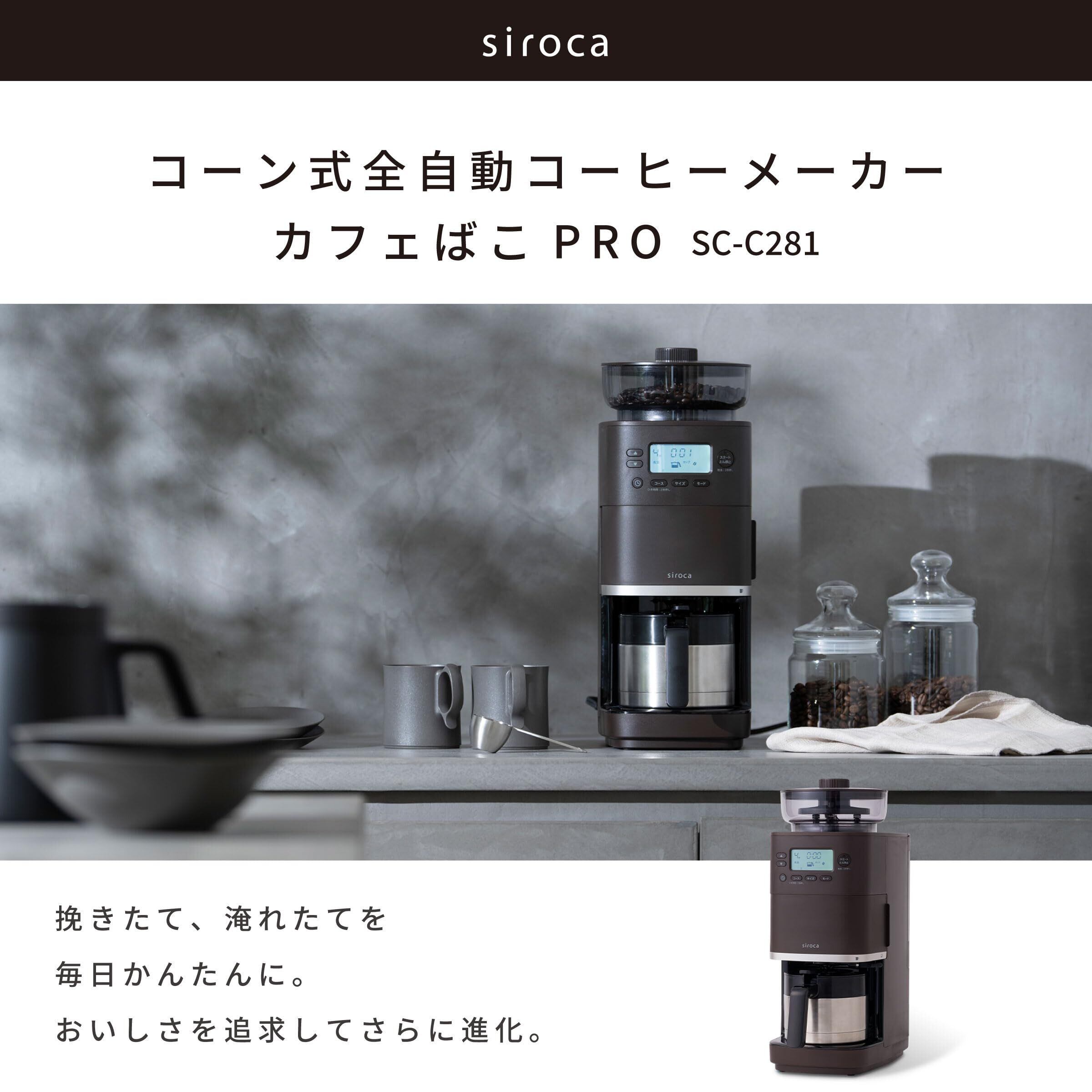 【特価商品】シロカ コーン式全自動コーヒーメーカー カフェばこ PRO SC-C281(TD) ダークブラウン|ステンレスサーバー デカフェコース搭載 新形状ドリッパー採用 ミル一時停止機能 豆・粉対応 豆・水自動計量 挽き目無段階調節