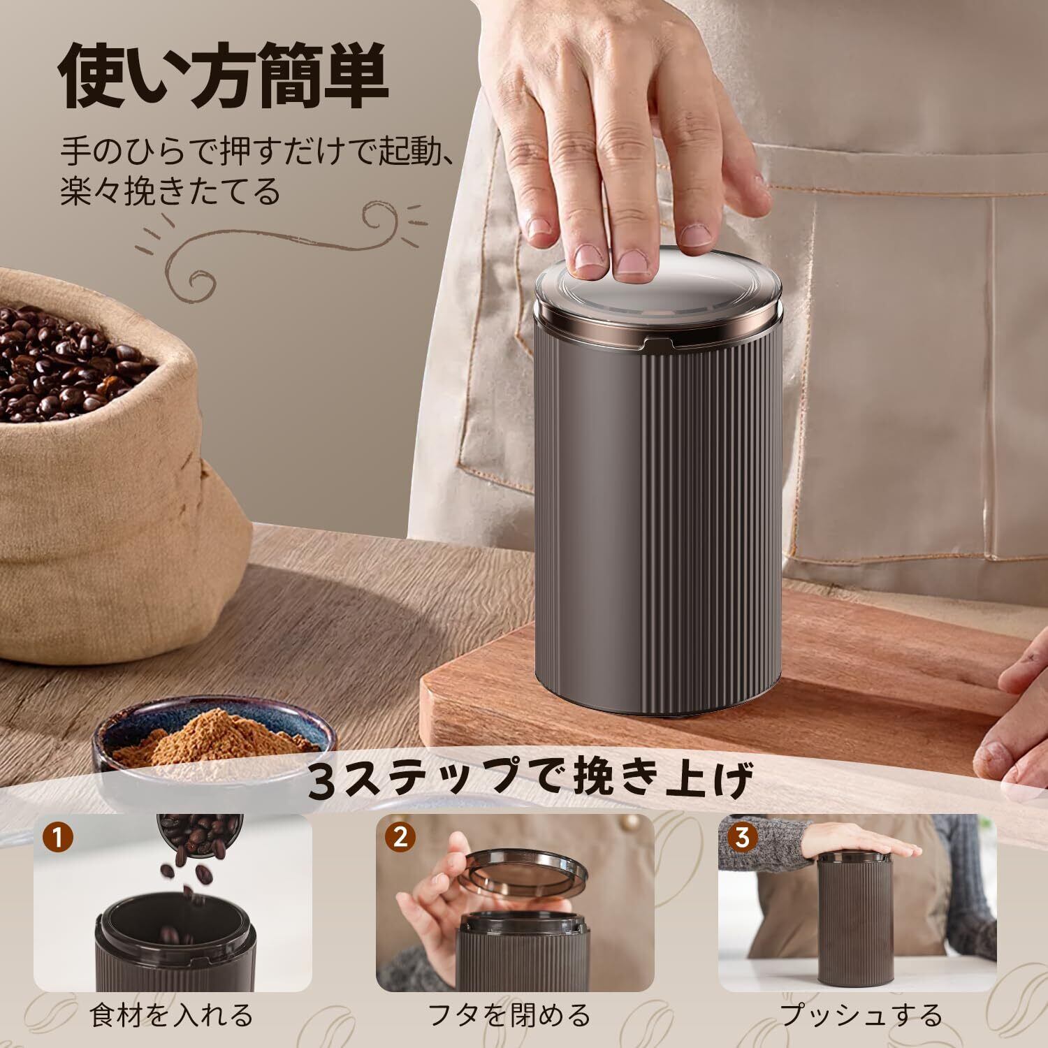 コーヒーミル 電動 カッター コーヒーミル 電動コーヒーミル コンパクト 粉末 コーヒー豆 ひき機 自動停止 豆挽き/緑茶/山椒/唐辛子/胡椒/山椒/調味料/穀物を挽く 一台多役 掃除ブラシ付 お手入れ簡単 操作簡単