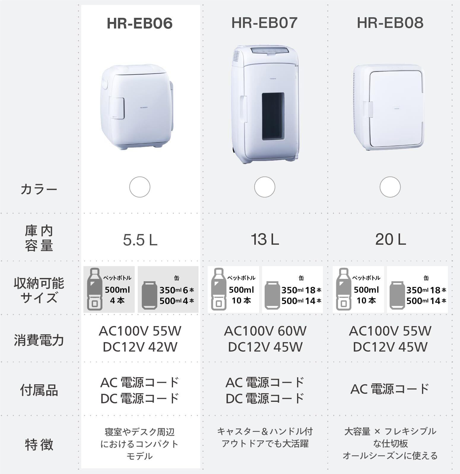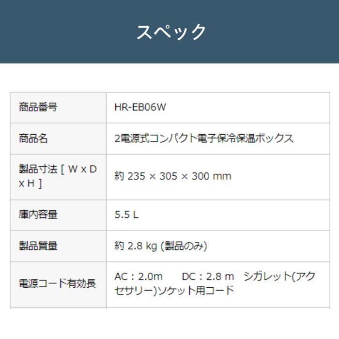 ツインバード 燕三条 2電源式コンパクト電子保冷保温ボックス 保冷保温庫 5.5L DC電源対応 ポータブル冷蔵庫 車載対応 熱中症対策 持ち運び 静音モード搭載【メーカー1年】ホワイト HR-EB06W