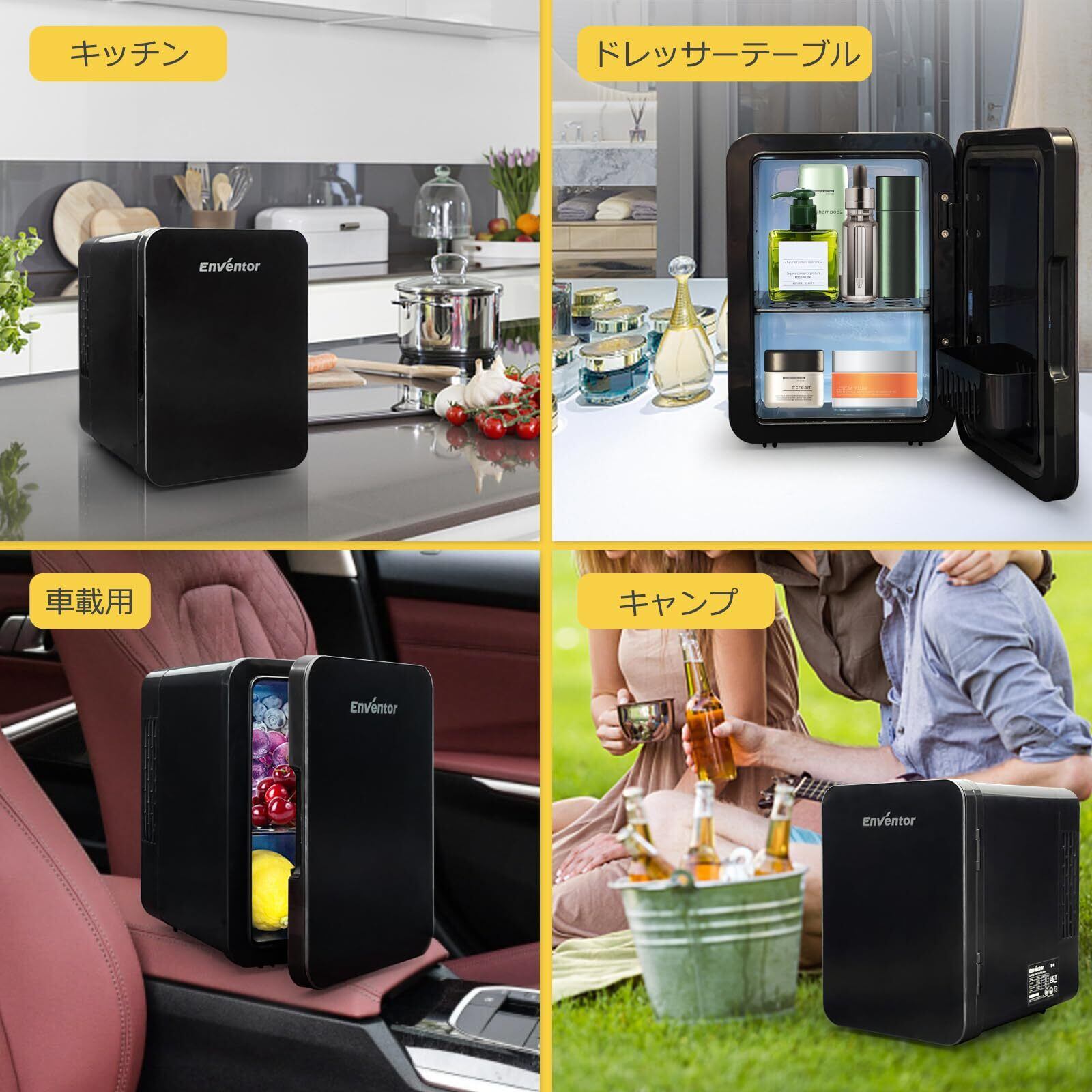 【在庫セール】Enventor 冷温庫 4L 小型 保冷・保温用 ペルチェ式 ミニ冷蔵庫 省エネ 静音 AC/DC給電 ポータブル冷蔵庫 僅か 軽量 持ち運び便利 12V 車載用 車中泊 キャンプ アウトドア 職場 卓上 寝室 家庭用 (ブラック)