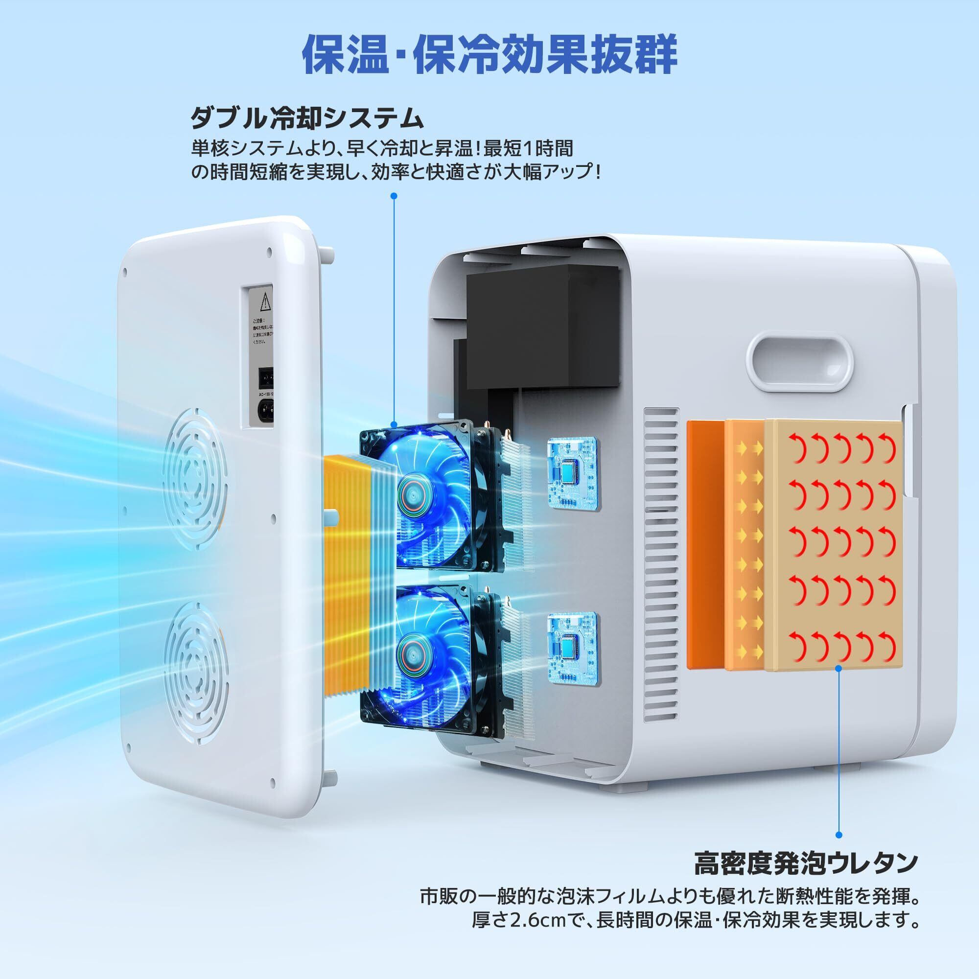 小型冷蔵庫 12.8L ミニ冷蔵庫 ポータブル冷蔵庫 保温・保冷両用 0℃~60℃ 温度調節可 ダブルペルチェ式 高密度発泡ウレタン 省エネ 静音 タッチ操作 誤操作防止 LCD温度表示 AC/DC給電 12V車対応 車中泊 キャンプ アウトドア 家庭用 日本語説明書 PSE認証済