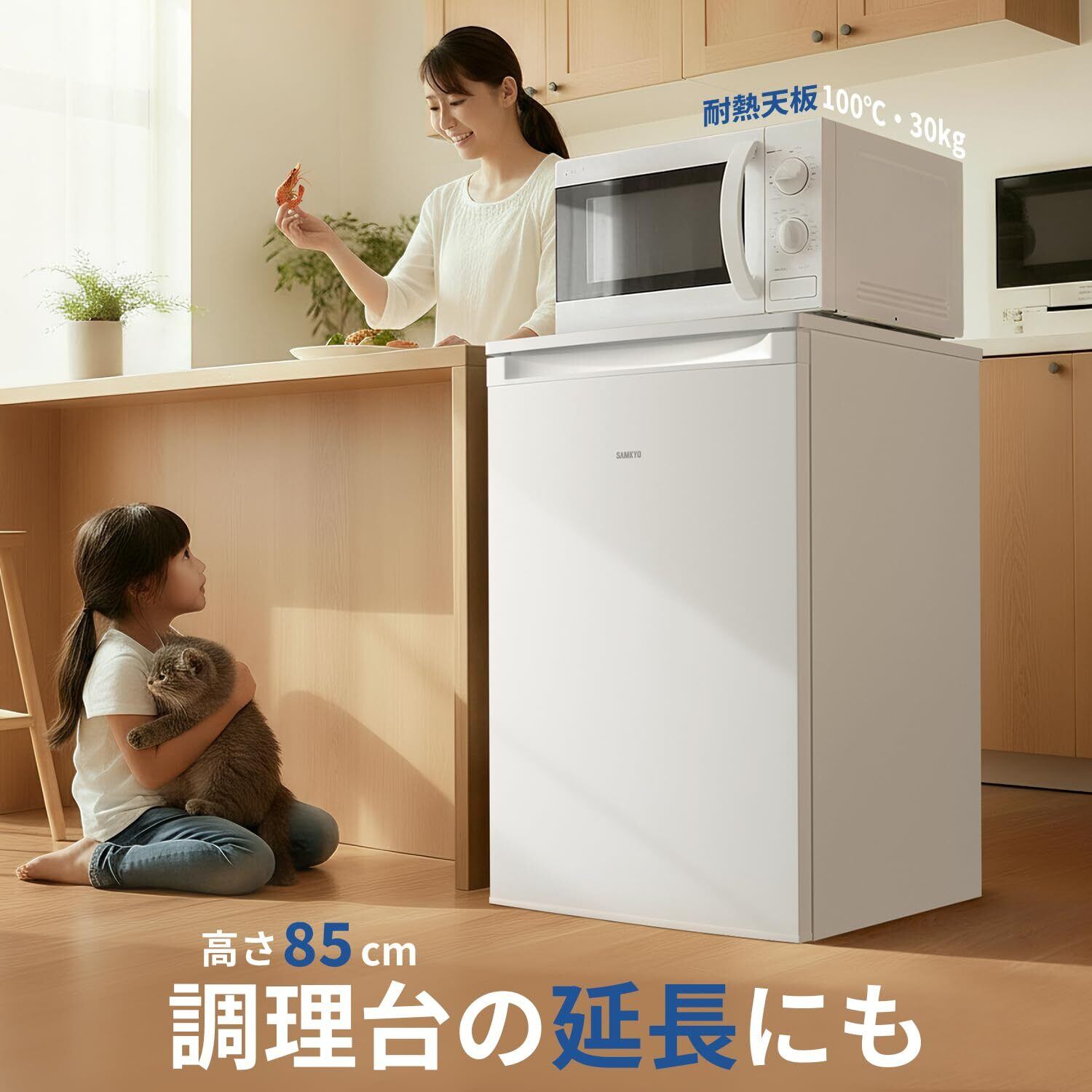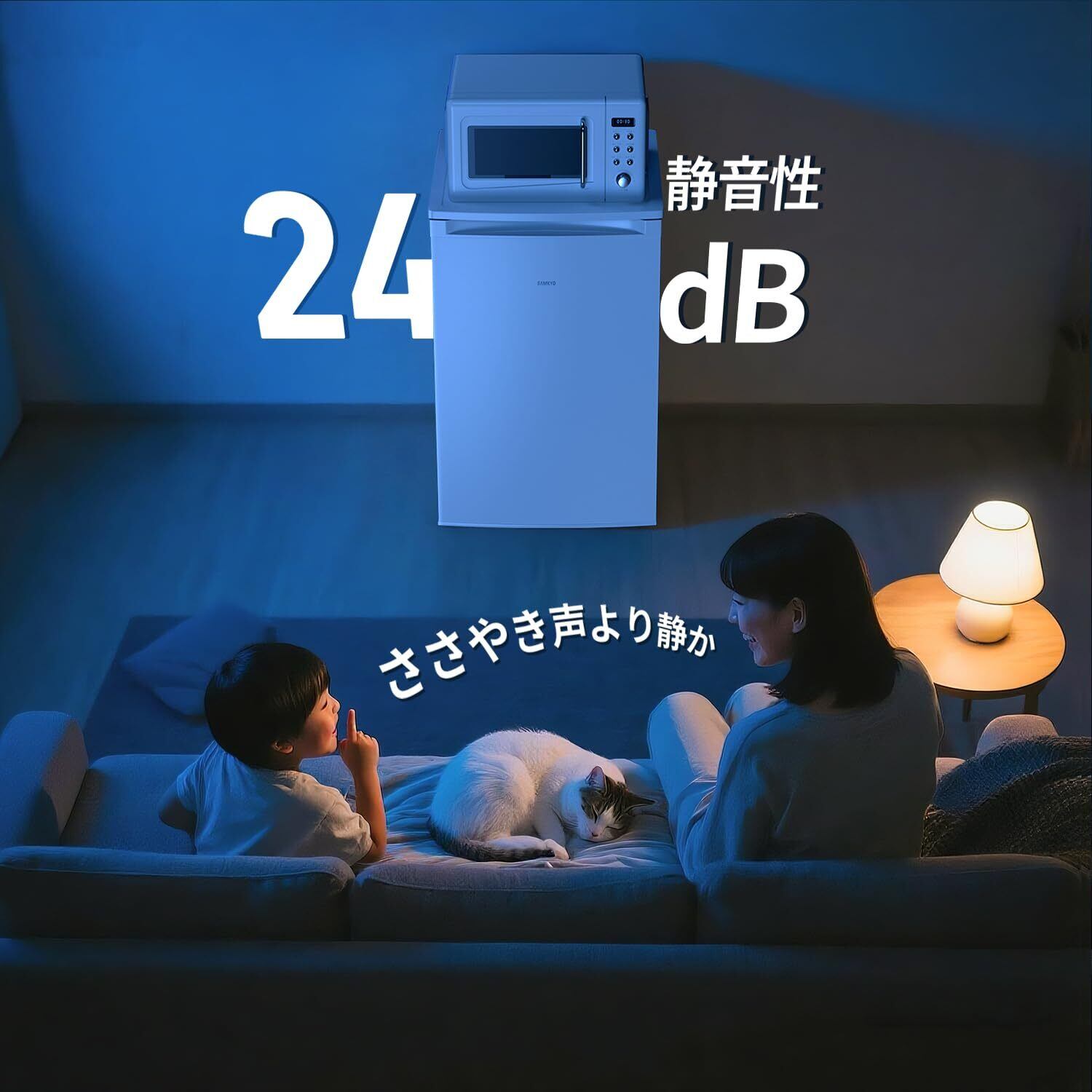 【コンパクトな設計】 サイズは幅54.5cm×奥行55cm×高さ85cm、27kg、設置面積はわずか0.19㎡。扉は左開きと右開きの切り替えが可能で、設置環境やスペースに応じて柔軟に対応します。小型で使いやすく、キッチンやリビングにもぴったりです。