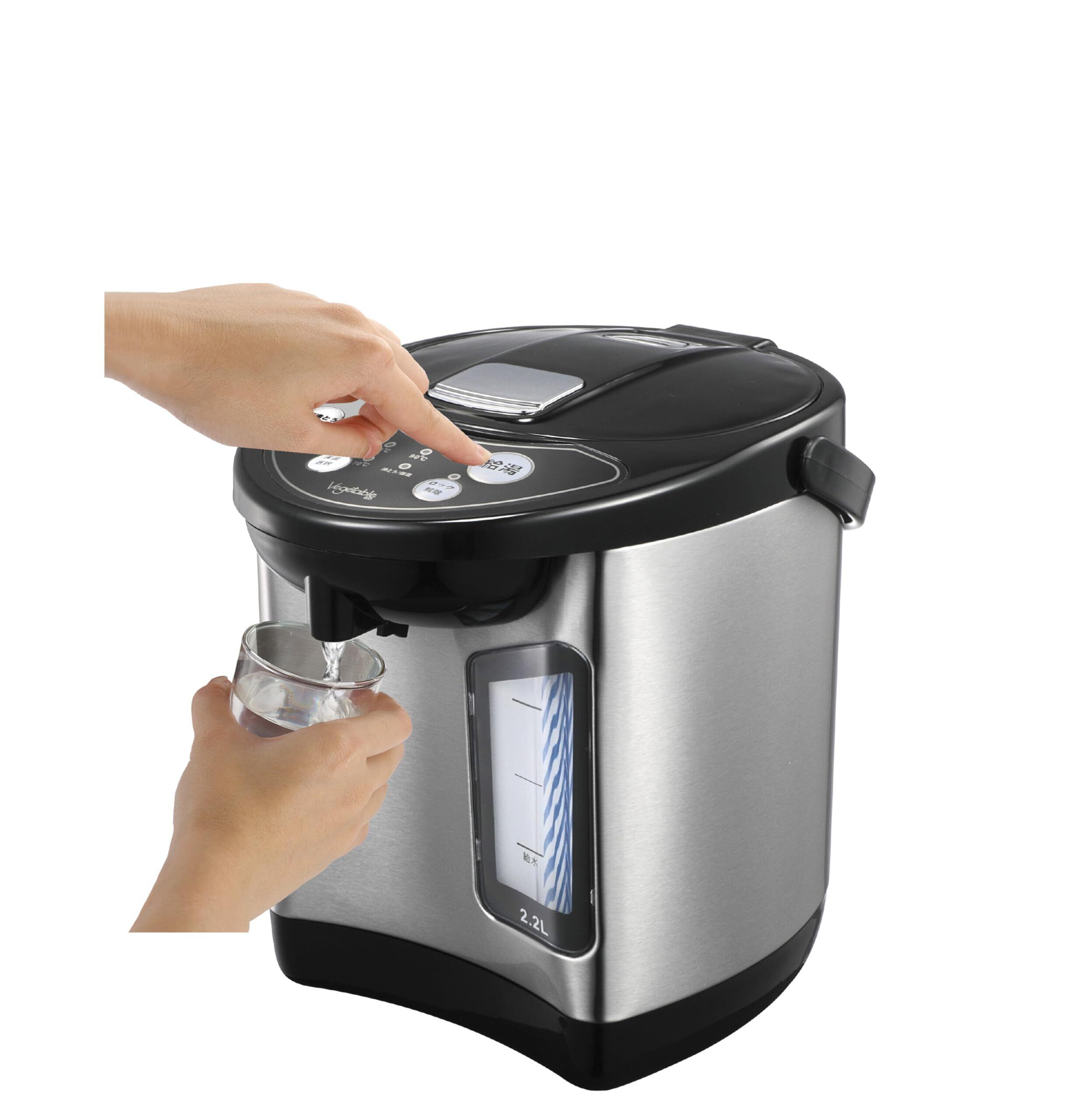 [Vegetable] 電気ポット 容量 2.2L 省エネ 3段階温度設定 シンプル操作の2WAY給湯 安心・安全構造 360度回転底 空焚き防止 電動給湯ポット ブラック/シルバー GD-UP220K
