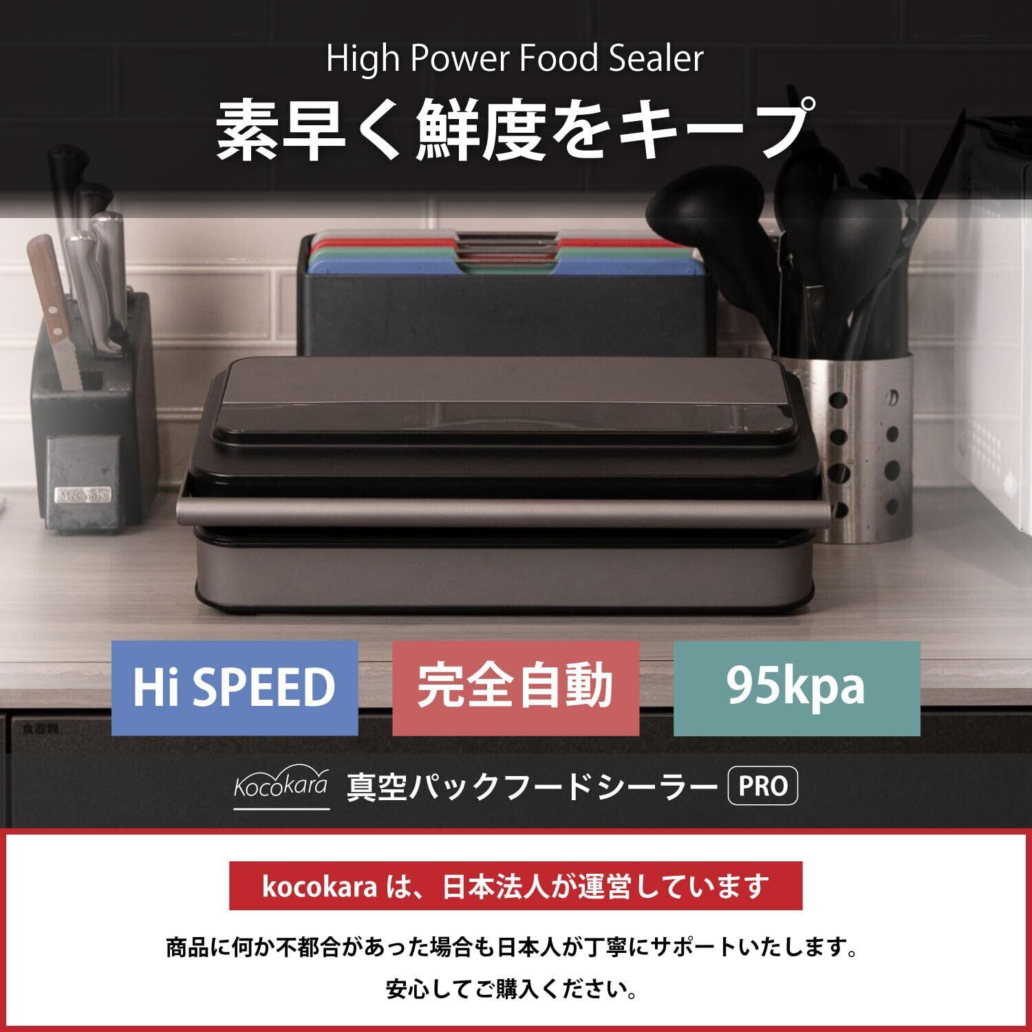 【特価セール】Kocokara 真空パック器 Pro 真空パック機 Pro 脱気シーラー シーラー 【吸引力95Kpa】 【専用袋50枚/ロール2本プレゼント】 完全自動 脱気スピード約20秒 業務用 家庭用 乾湿両用 軽量設計 簡単操作 (グレー)