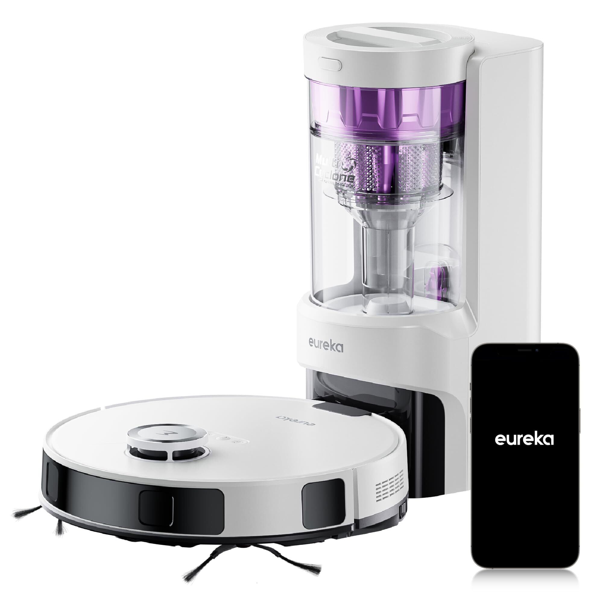 【特価セール】EUREKA(ユーリカ)ロボット掃除機 E10s gen2 6000pa強力吸引 サイクロン式 紙バッグ交換不要 経済的 水拭き両用 高精度マッピング 自動モップリフト 自動ゴミ収集 環境に配慮 180分間連続稼働 珍しいサイクロン式 アプリ制御 Alexa対応 ホワイト