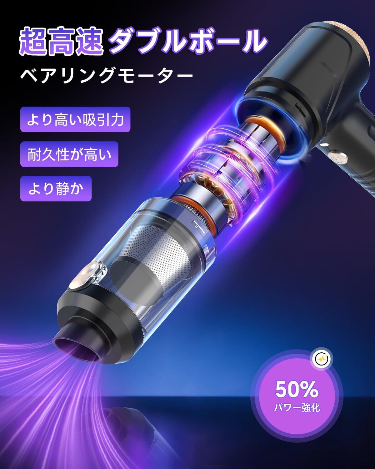 【ブラシレスモータ搭載・超強力モーター】この車用掃除機はブラシレスモータとを採用して、普通なブラシモーターと比べては長寿命/低騒音/電磁ノイズが少ない/省エネが可能/効率がよく/メンテナンス性など利点があります。アップグレードされた超強力モーターを採用、最大35000Paの吸引力をサポートし、ゴミをを逃さずしっかり吸い取ってくれます。場所を選ばずどこでも簡単に使えるようになりました。