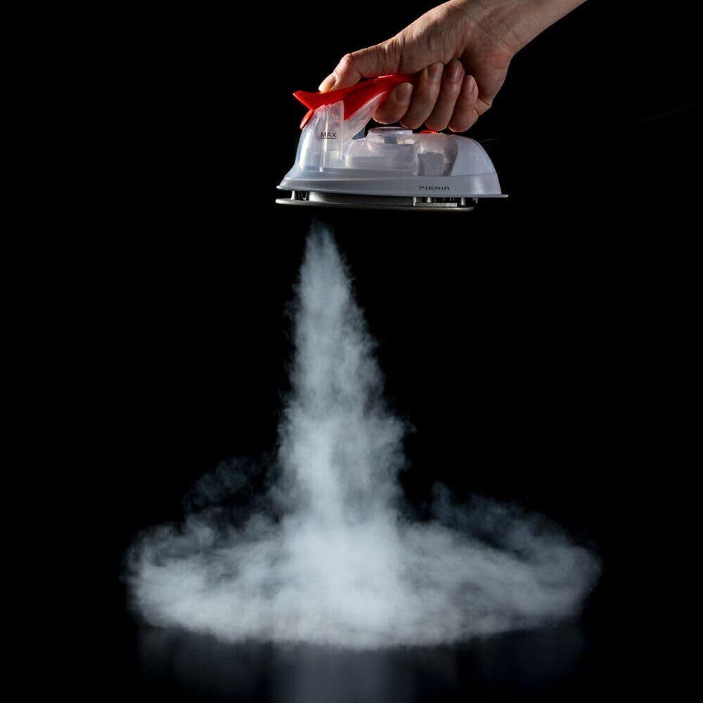 本格スチーム機能付き。出張先でのシャツの襟や袖のシワ伸ばしに最適。