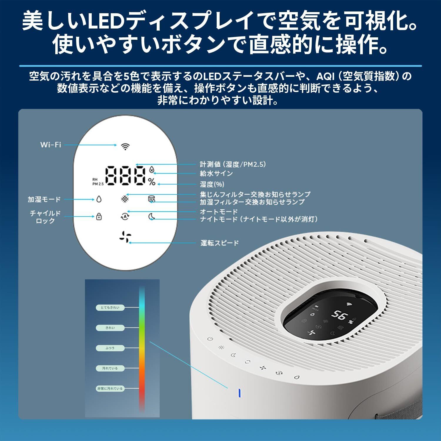 空気質のモニタリング/本体LED表示:5色のLEDカラー