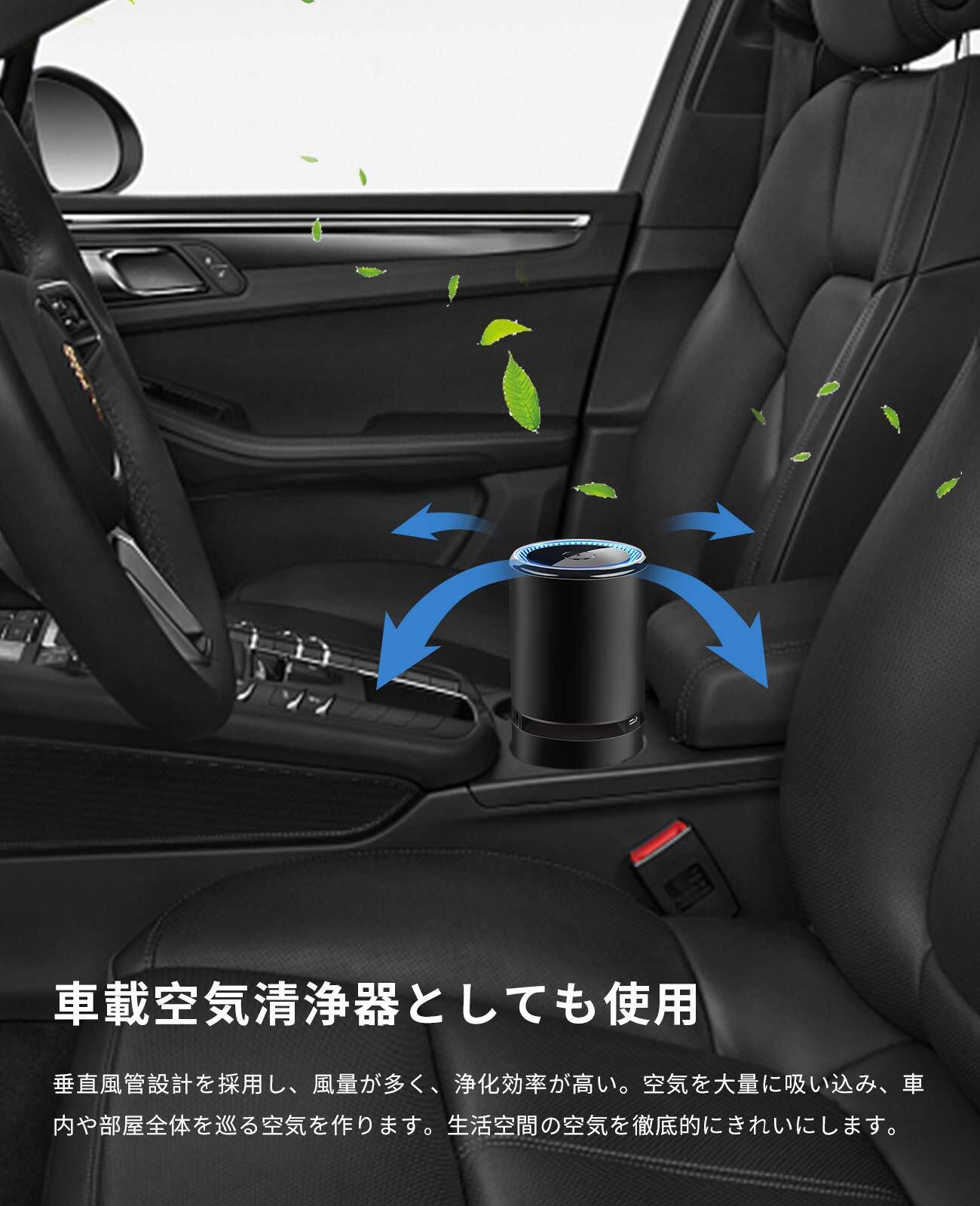 Sugarman 車用空気清浄機 車載 空気清浄機 卓上 小型 イオン発生器 1000万個高密度マイナスイオン USB接続 2段階風量設定 LEDライト搭載 軽量 静音 ほこり/PM2.5/ペット/部屋/キッチン/トイレ ブラック