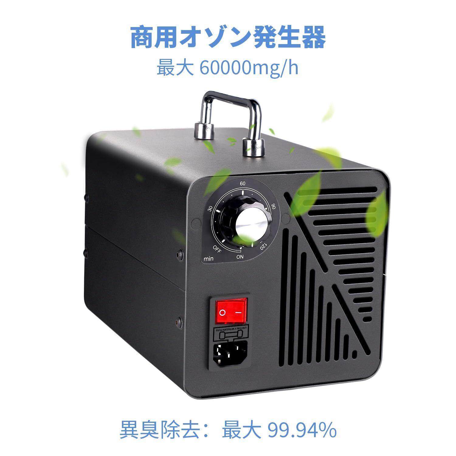 【特価セール】【日本正規認証品】オゾン発生器 空気清浄機 最大300㎡対応 タイマー機能付き 家庭用/車用/オフィス用 静音設計 (黒, 80000mg)