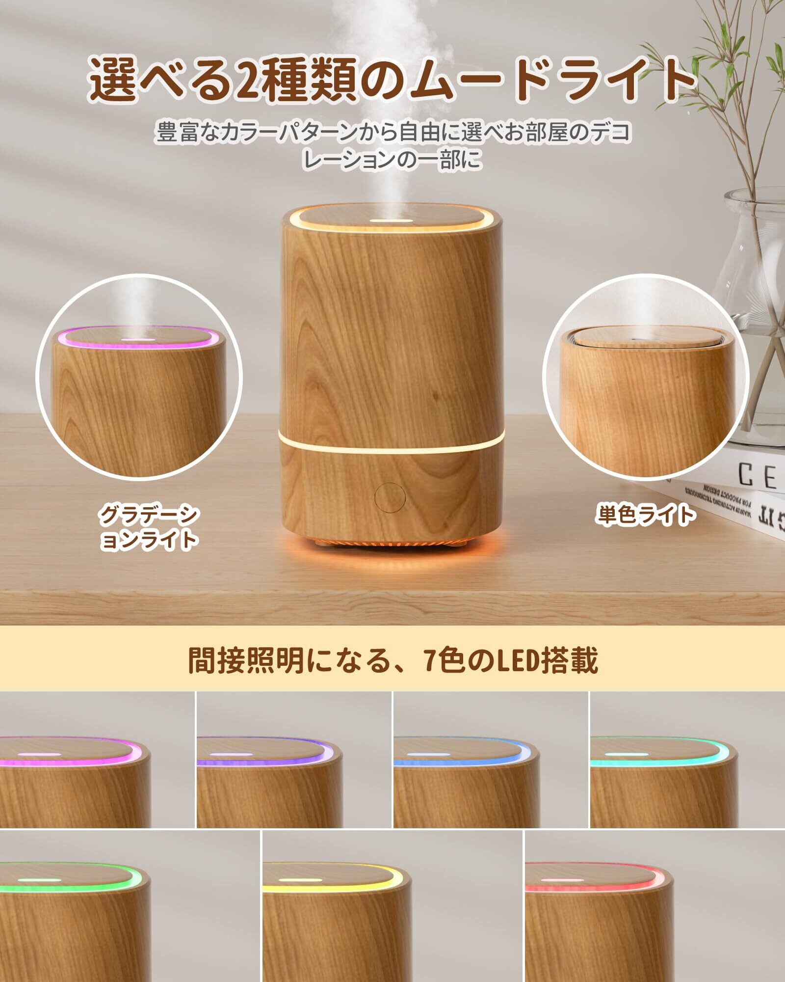 【2025発売新モデル・一台多役】加湿器 小型 アロマディフューザー 次亜塩素酸水対応 除菌 超音波式 卓上 アロマ対応 LEDライト7色 お手入れ簡単 静音 省エネ 空焚き防止 加湿器 小型 コンパクト お手入れ簡単 乾燥対策 寝室 部屋用(ライトウッド)