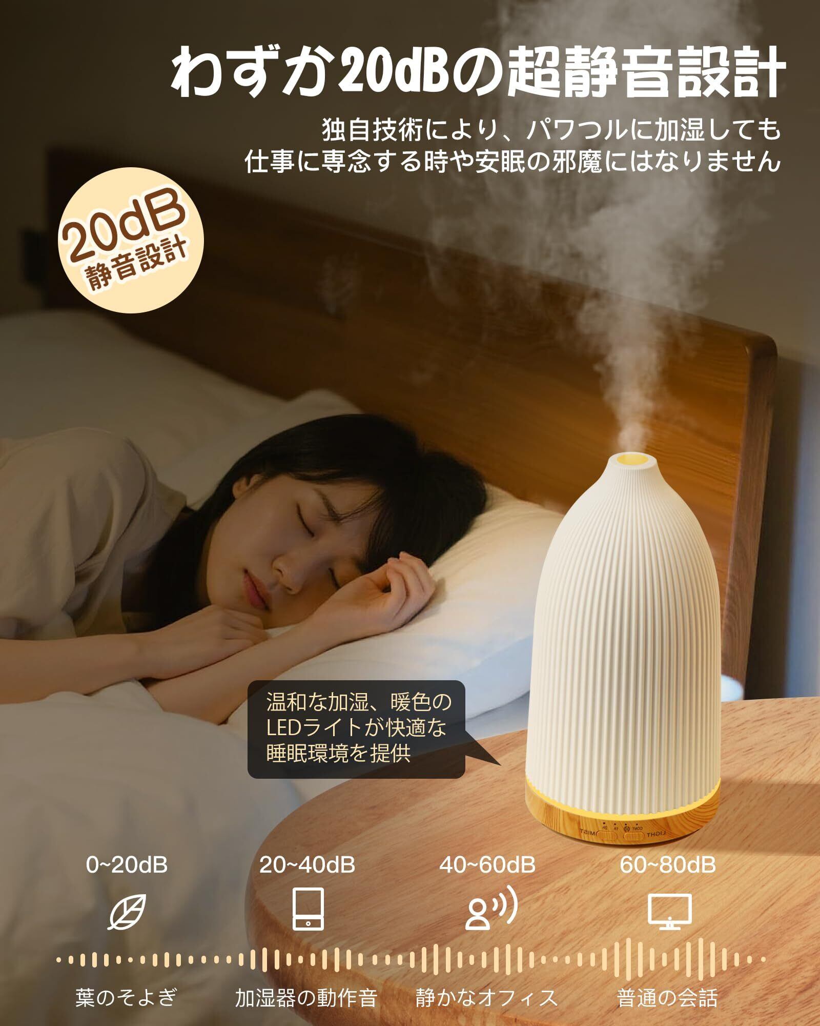 特徴 アロマディフューザー, ナイトライト, 漏れ防止, 自動シャットオフ, 静粛性