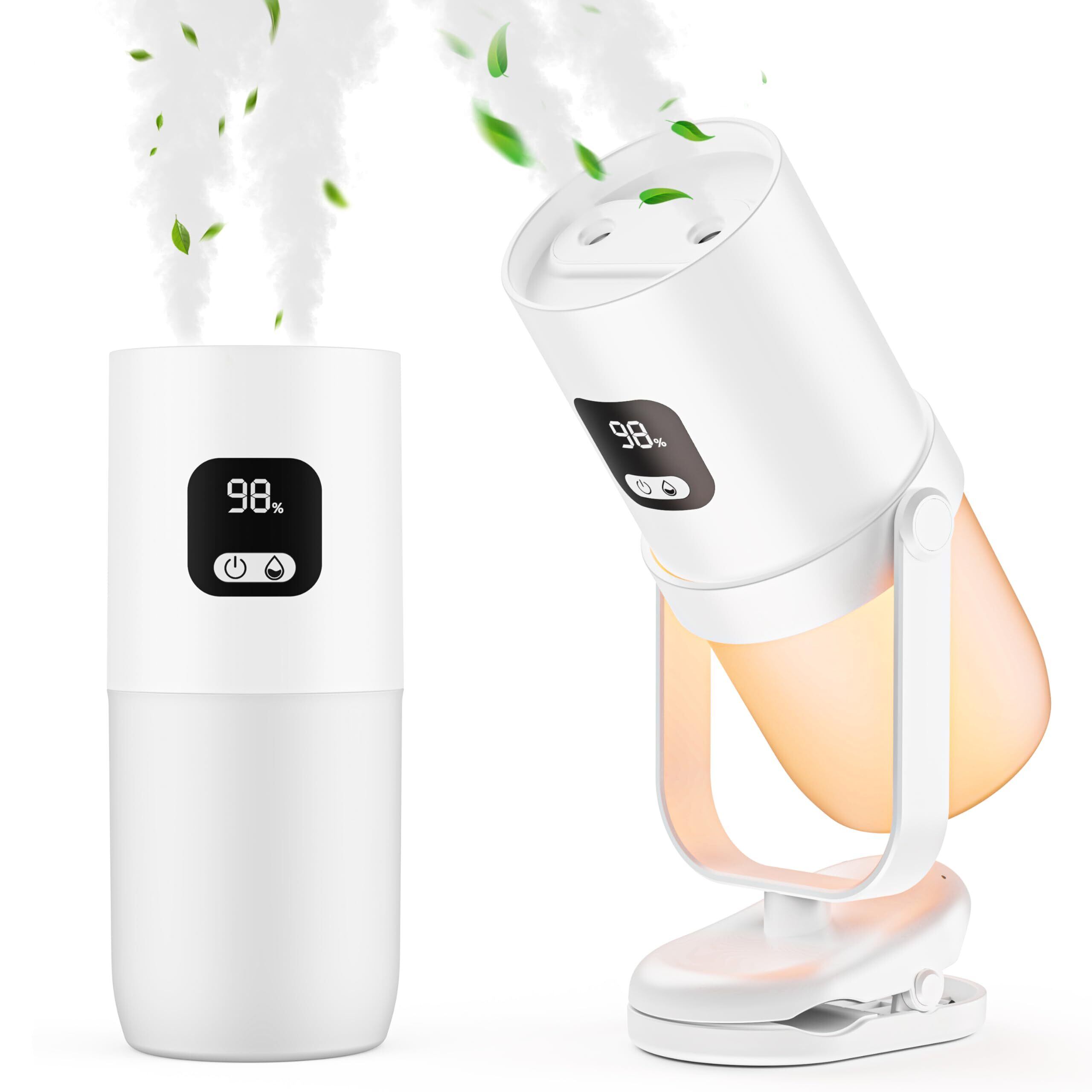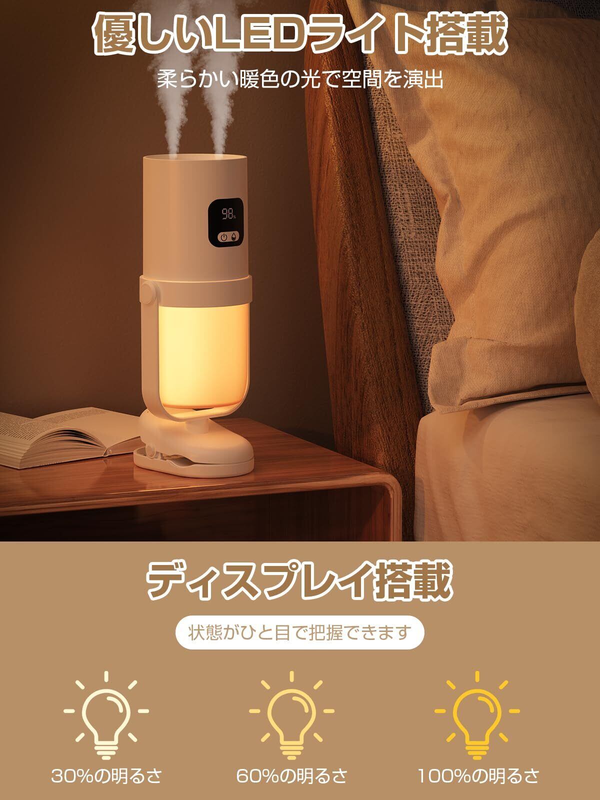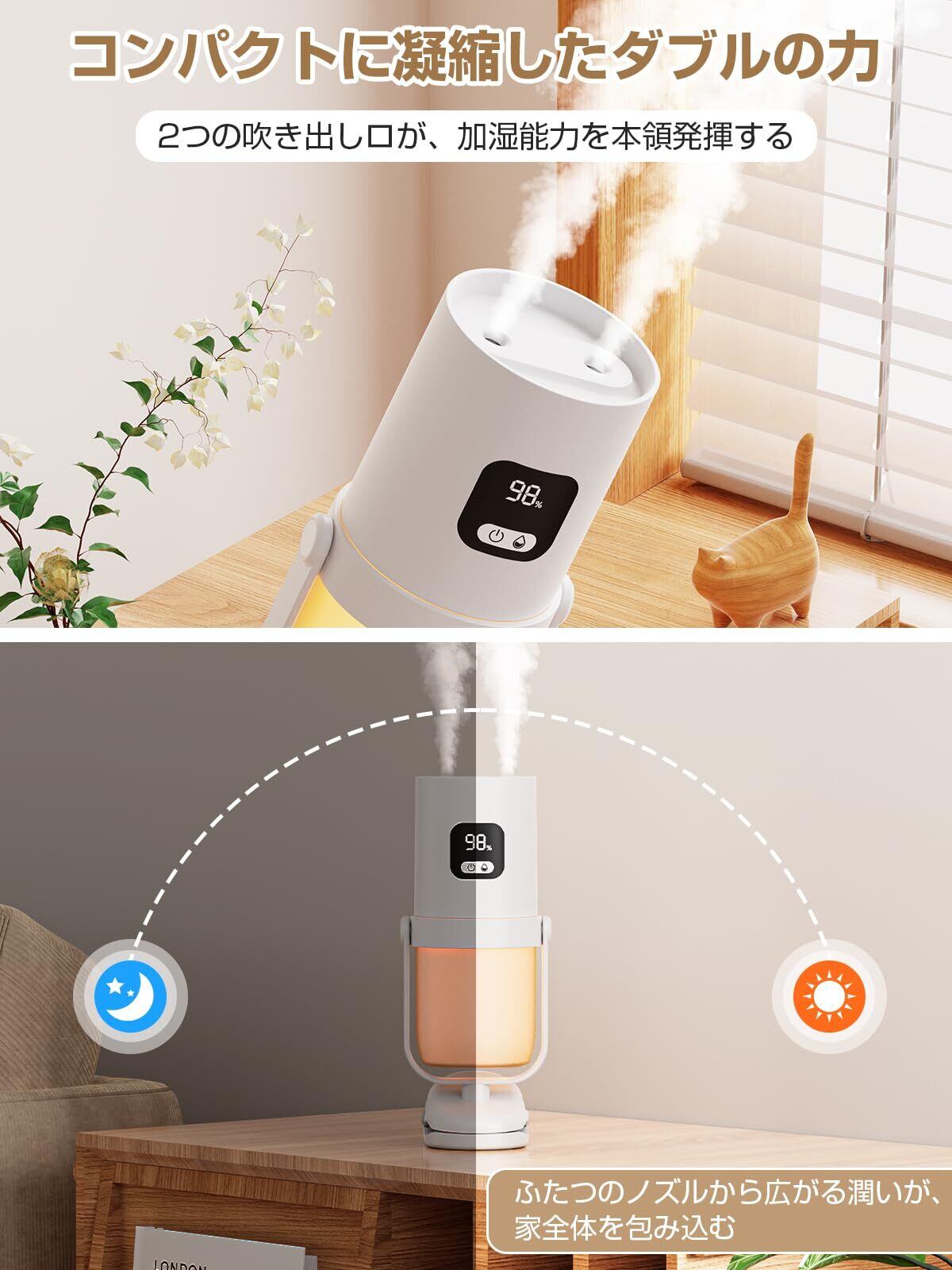 加湿器 小型 卓上【2025新モデル&角度調整&デジタル残量表示】超音波式 ダブル噴霧 静音 大容量バッテリー内蔵 LEDライト タイマー機能 持ち運び便利 コードレス 省エネ 350ml大容量 車載/寝室/オフィス/リビング対応 乾燥/花粉症/肌荒れ対策 日本語説明書 プレゼント (ホワイト)