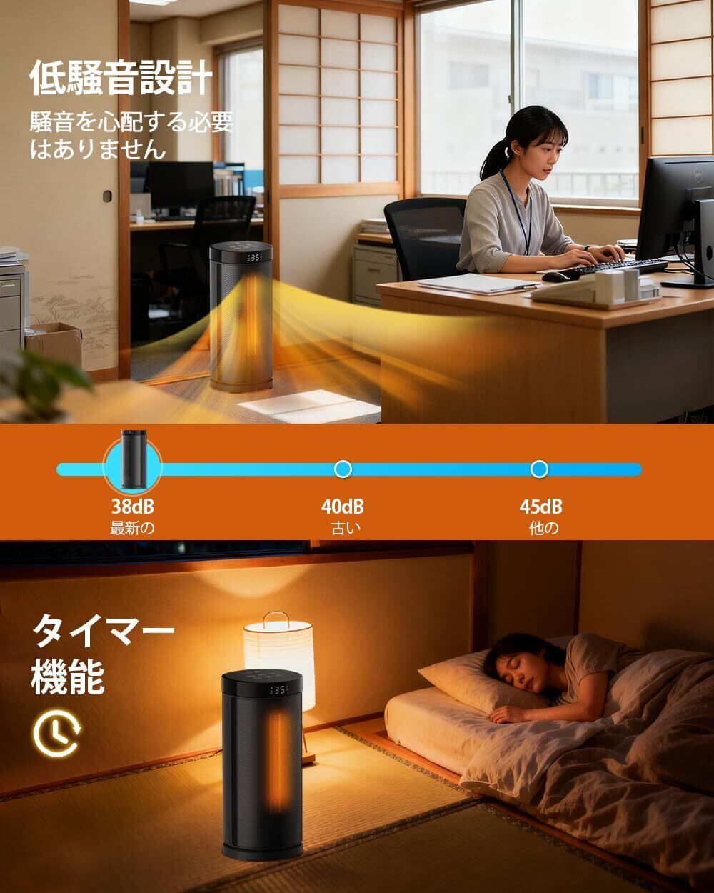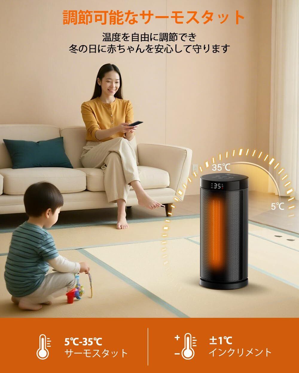 【防倒自動オフでさらなる安心感】本体が転倒した場合は自動で電源が切れる「防倒自動オフ機能」を搭載。小さなお子様やペットのいるご家庭、また狭い更衣室や洗面所でも安心して設置できます。ヒーター 電気として安全性と省エネ性能を両立し、使う人の暮らしを第一に考えた設計です。オフィス/リビングでの長時間利用、寝室での就寝時利用にも適し、日本の冬を快適かつ安心に過ごすための頼れる電気ヒーターです。