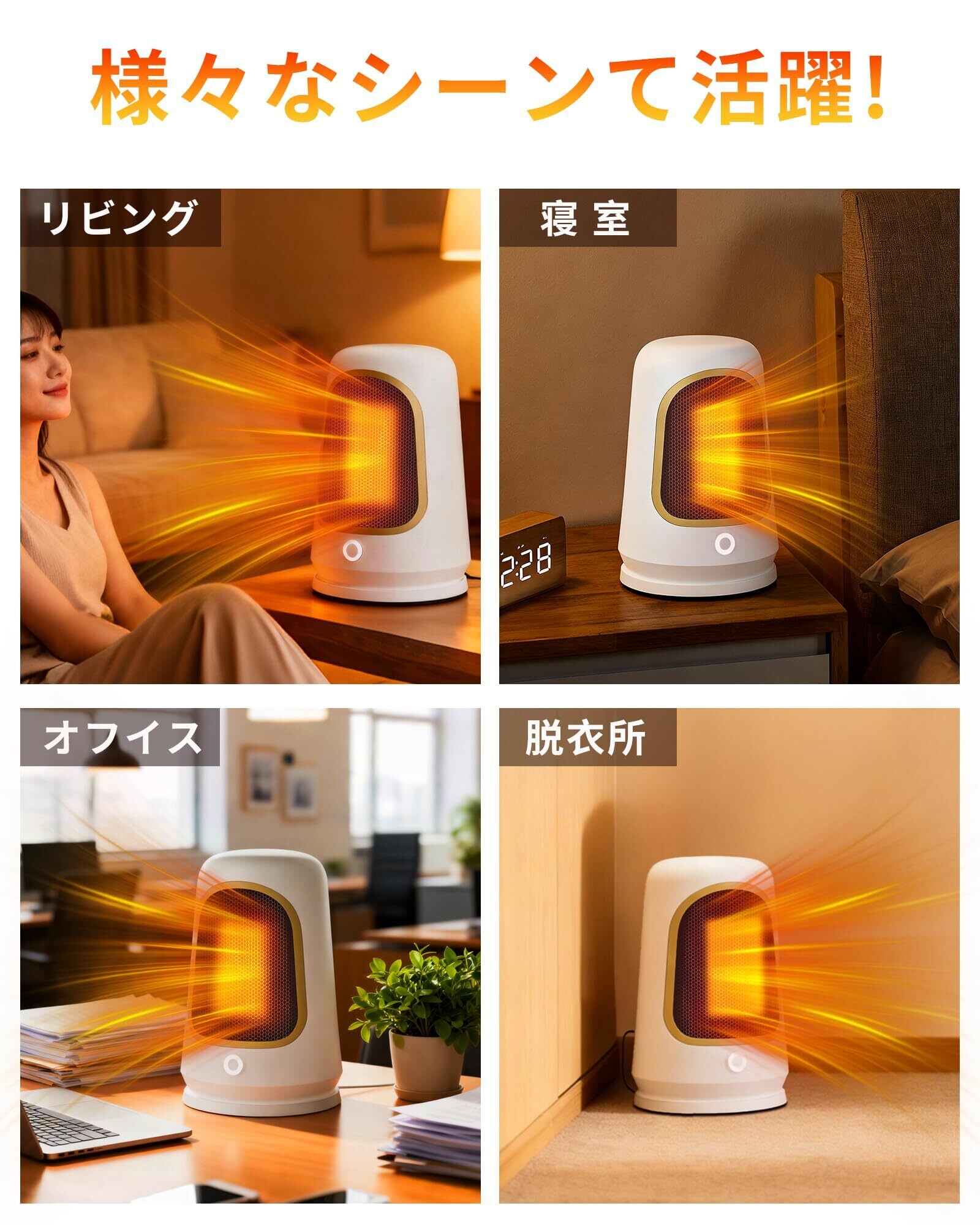 【2秒即暖・高効率PTC加熱】セラミックヒーターは最先端の高品質PTCセラミック加熱技術を採用したセラミックヒーター。電源を入れてわずか2秒で暖気が立ち上がり、寒い冬の朝や帰宅直後でも“待ち時間ゼロ”で快適な温度へ。従来ヒーターより発熱効率が大幅に向上し、省エネ性能も抜群。無駄な電力を使わず、必要な暖かさをしっかり届けます。コンパクトながら強力な加熱パワーと即暖性を兼ね備え、冬の寒さ対策に最適な暖房器具です。