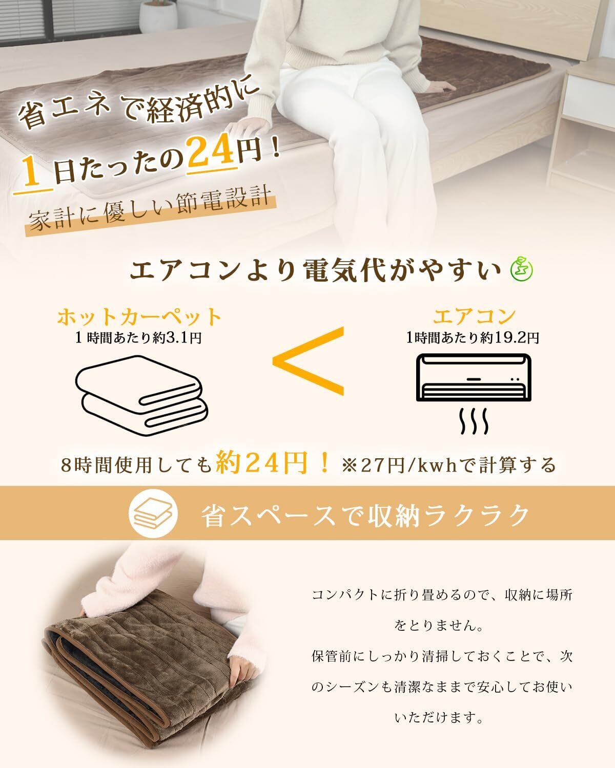 【新着商品】ホットカーペット 1畳 188×80cm 電気カーペット 4段階温度調節 10Hタイマー 電気毛布 敷き シングル 省エネ ホットマット 一人用 ダニ退治 3分速暖 切り忘れ防止 暖房器具 フランネル仕上げ 収納簡単 ごろ寝マット 床/ベッド/ソファ 足元 防寒 PSE認証済 冷え対策 (ブラウン)