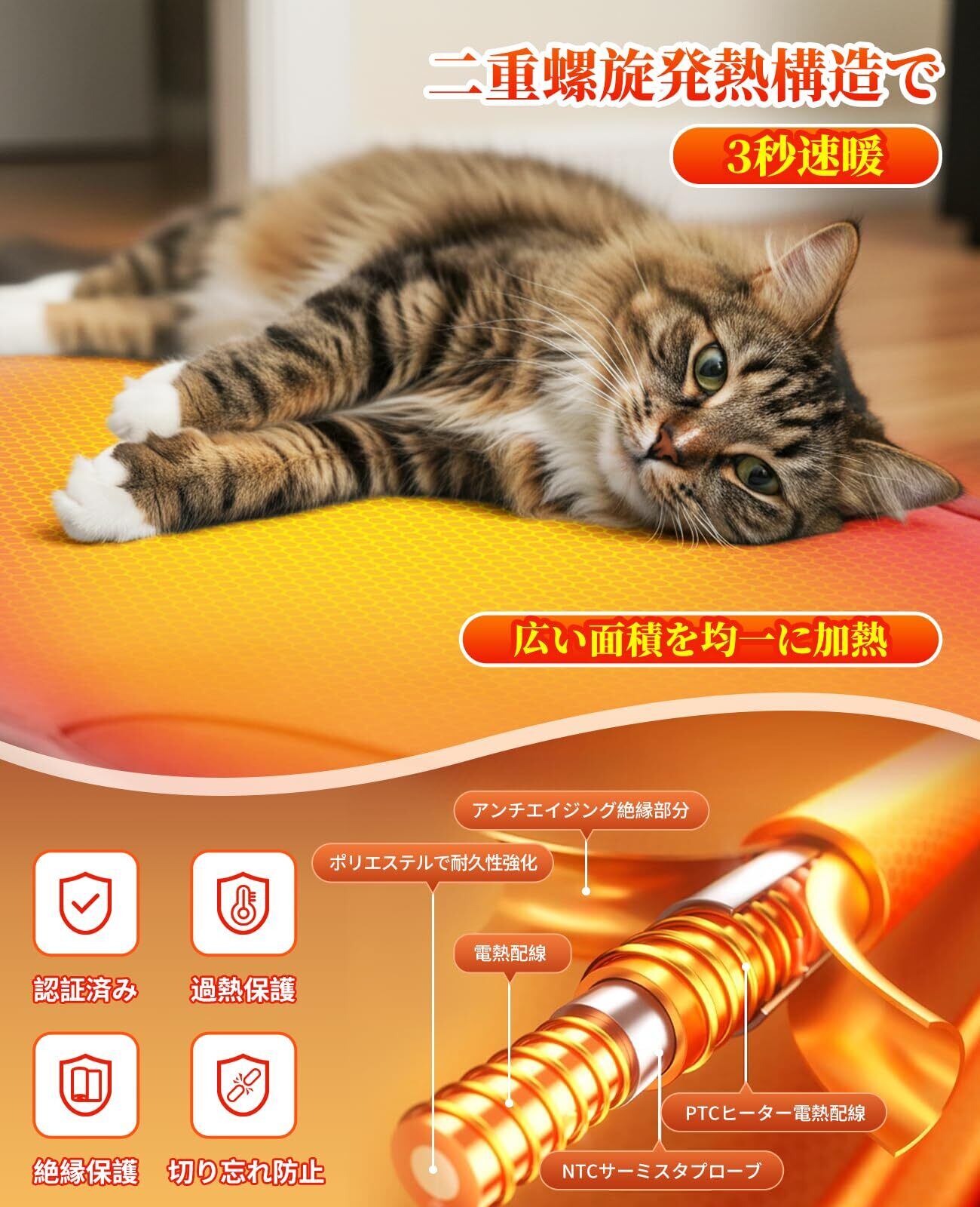 【新着商品】電気ホットマット【3秒速暖&最高60℃&加熱効果99%UP】ホットカーペット 一人用 椅子/ベッド 温め 省エネ 6段階温度調整 4段階タイマー ポカポカ 過熱保護 切り忘れ防止 PSE認証済 ダニ退治 防臭抗菌 洗える 滑り防止加工 電気座布団 足元マット 男女兼用 プレゼント 在宅勤務/テレワーク/ごろ寝 防寒対策 2M電源コード 40*90cm