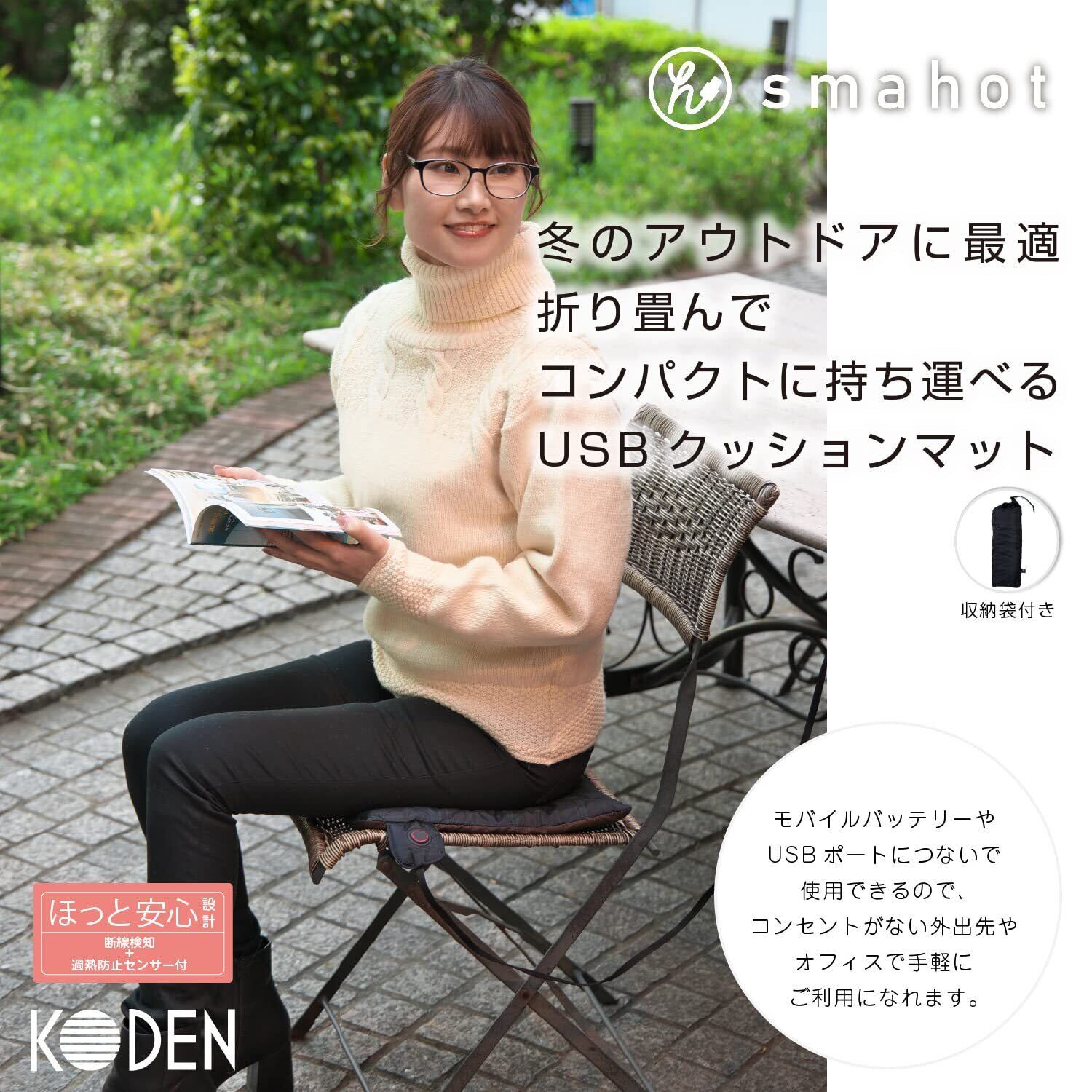 【新春セール】広電(KODEN) USB 電気マット アウトドア対応 速暖 洗えるカバー付き 35×32cm チェック柄 CUM390G-K