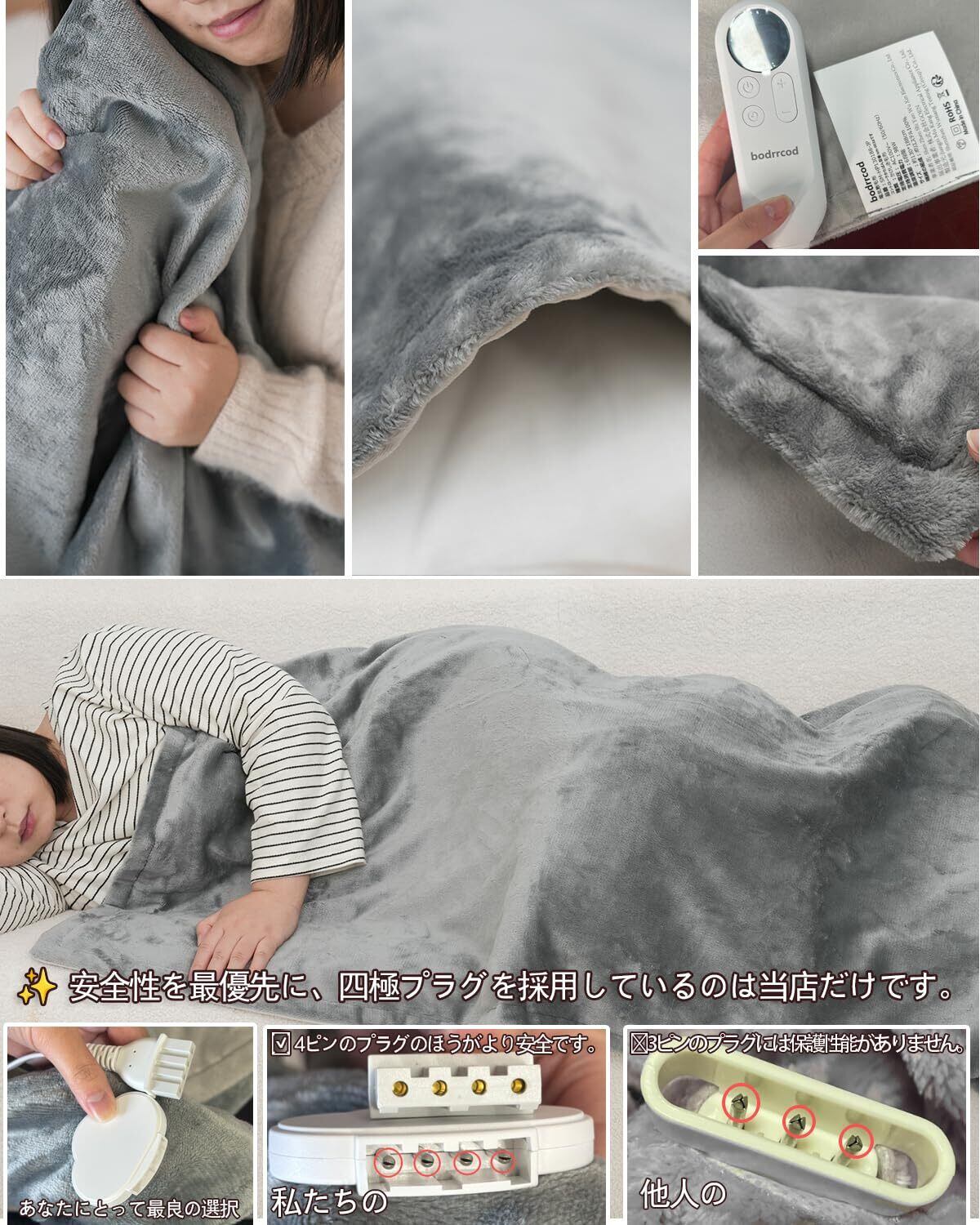 「敷毛布&掛け毛布&冬の暖かいギフト&さまざまなシーンで活躍」この冬用毛布 はただの毛布だけではありません。膝掛けや肩掛け、敷き毛布など、さまざまな使い方ができます。ベッドだけでなく、ソファでテレビを見るときやオフィスの椅子に座っているときにも活躍します。この冬の寒さから解放されましょう。おしゃれなパッケージも付属しているため、親友へのホリデー贈り物にも最適です!bodrrcod 電気毛布は、冬の寒さから解放され、心地よい温かさを提供する素敵な選択肢です。快適な眠りをサポートし、暖かく包まれながらリラックスできる時間を提供します。この冬、bodrrcod電気毛布で暖かさを感じてみませんか?ぜひお試しください。