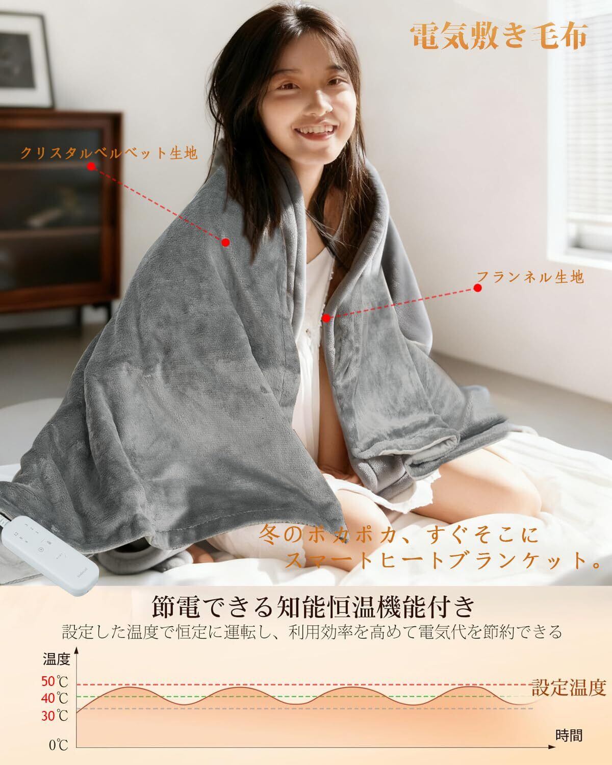 「従来品より広い!188×130cmの大型サイズで 冬の寒さを徹底さよなら。敷布団にも掛け布団にもなる多機能タイプです。従来の小さい電気毛布ではできなかった「共有体験」を価値に変換しましょう。一人で掛けたり敷きたり使えることはもちろん、就寝時、ダブルベッドにも余裕のサイズ!夫婦で一緒に使ってもはみ出す心配なしです、リビングであはソファに広げれば、家族みんなで足元ポカポカ。従来品より約2倍の広さでキャンプのテント内で掛け布団代わりに!従来品では足りなかった足元までしっかり保温くれます。大型両用設計で、あらゆる寒さシーンを快適に変えます!冬の快適ライフを叶える掛け敷き両用電気毛布は冬の暖房器具グッズとして最適、両親、恋人、家族、友達、お子様へのギフトとしてもも最高、掛け敷き兼用かつ節電でこの冬には楽しく過ごしましょう