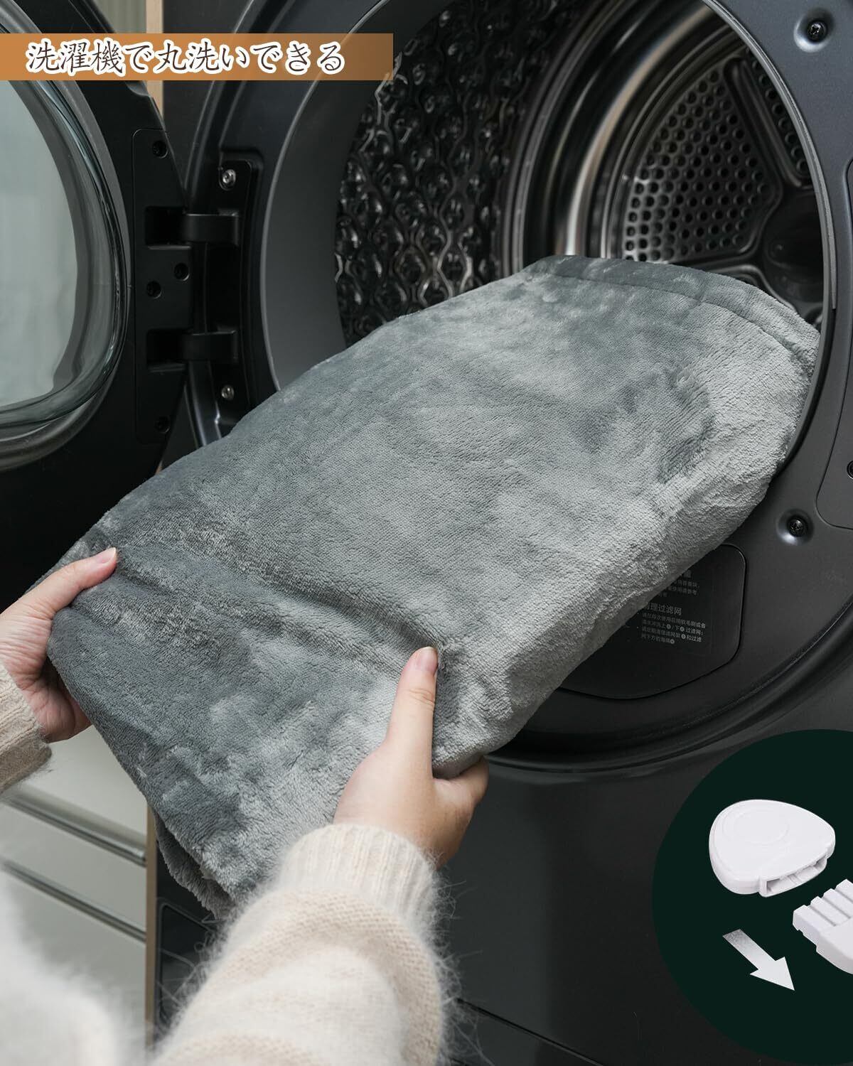 「洗濯機で丸洗える&抗菌除臭&頭寒足熱配線」電気カーペットは、優れたシール性能を持っており、内部の加熱線の損傷を心配する必要はありません。コントローラーを取り外して、家庭の洗濯機で丸洗いや手洗いができます。洗濯試験にも合格しており、安心して洗うことができ、いつでも清潔で衛生的にご利用いただけます。また、高温(50℃)で加熱するとダニが死滅すると言われていますので、温度(50℃)に設定して布団にかけると、ダニを消滅させることができ、電気膝かけを常に清潔に保ち、毎年冬に再利用することもできます。経済的で素晴らしい選択です。(※や乾燥機には対応していません)