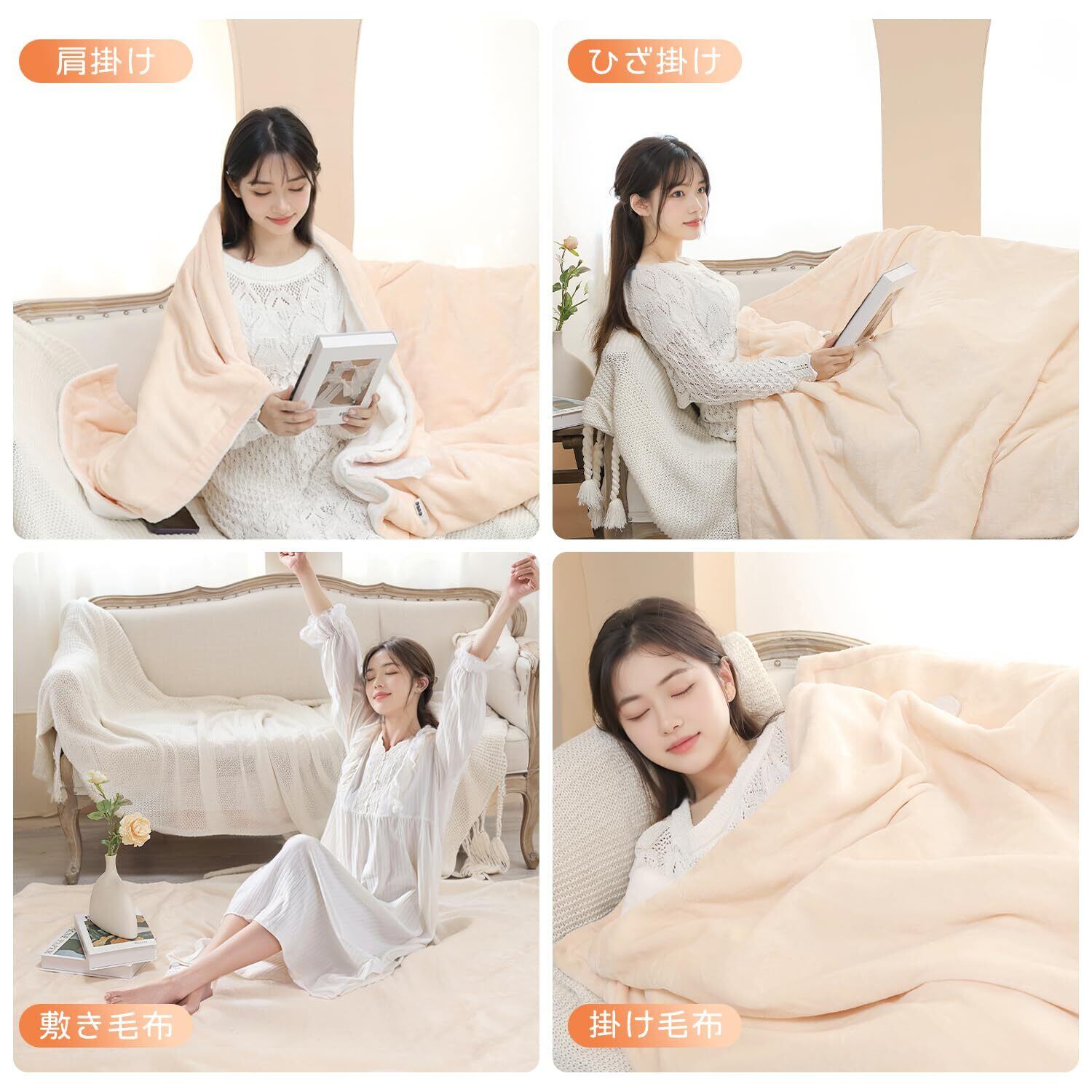 快適で柔らかな素材:高品質の超柔らかい素材を使用しており、極上の触り心地と快適さを提供します。ベッドやソファ、オフィスなど、どこで使っても柔らかな電気毛布が暖かく包み込み、毎回の使用が心地よいものになります。
