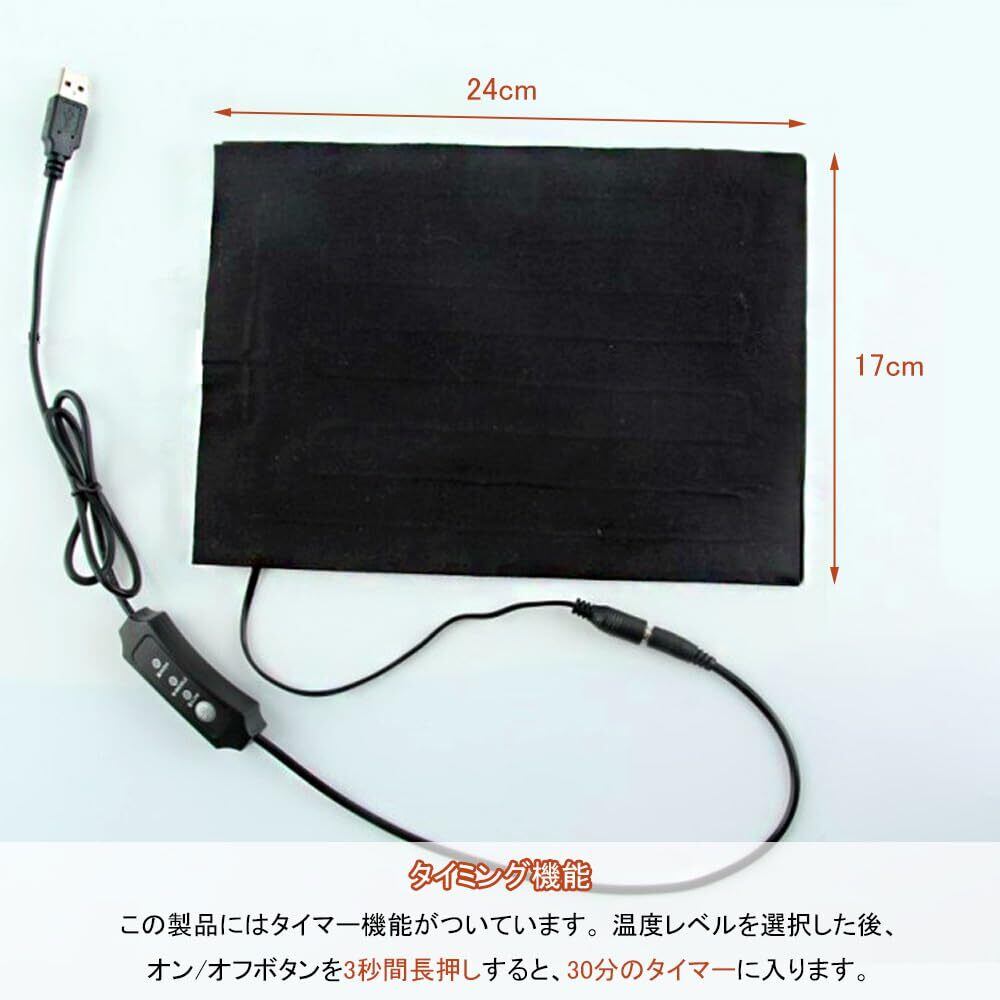 USBヒーター パッドヒーター 電気加熱シート 足元暖房 タイマー機能 防水 過熱保護 冷え性に対応 3段階温度調節 5V用 (ブラック, 24*17cm)